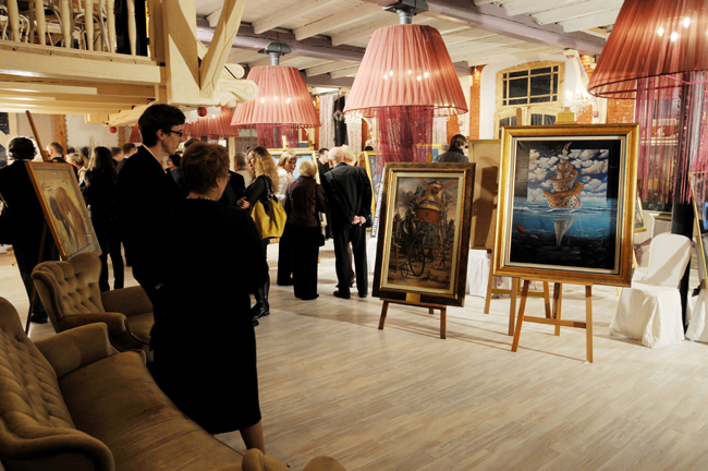 Zaproszeni goście mieli możliwość zarówno obcowania z dziełami sztuki, specjalnie na ten wieczór przywiezionymi do Łodzi , jak i rozmów z artystami w niepowtarzalnej atmosferze, panującej w oryginalnych wnętrzach restauracji Gęsi Puch, które tchną atmosferą starej fabrykanckiej Łodzi.