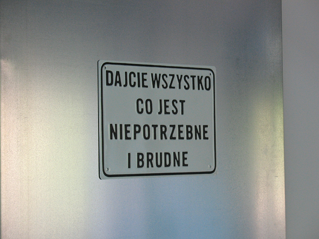 W różnych miejscach galerii spotkamy się z blaszanymi tabliczkami, które w pierwszym momencie mogą wydawać się zwykłymi tablicami informacyjnymi. Jednak ich treść zaprzecza takiej proweniencji. To „zdania perełki”, lapidarne hasła, zawierające w swojej prostocie nieoczekiwaną mądrość: “Trochę raju trzeba mieć w tym bloku” czy “Jak się dobrze nie trafi to wszędzie jest źle” - to niektóre ze „Zdań napowietrznych” Ryszarda Grzyba. Można stać się szczęśliwym posiadaczem jednego z takich haseł, dzięki automatowi zainstalowanemu w galerii, z którego, po wrzuceniu 2 zł wypada szara tabliczka-gadżet z sentencją.