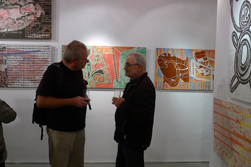 Jak zwykle obrazy Marka Sobczyka mówią i choć czasem są to rozwlekłe monologi, czasem lapidarne hasła - zawsze trafiają w sedno. Mówią też dosłownie - zapisanym na płótnie tekstem i znakiem, rozpoznawalną przez widza formą i kolorem. Są dla widza jak rebus do rozszyfrowania. Zatem obejrzyjmy wystawę i odgadnijmy hasło ukryte w obrazach.