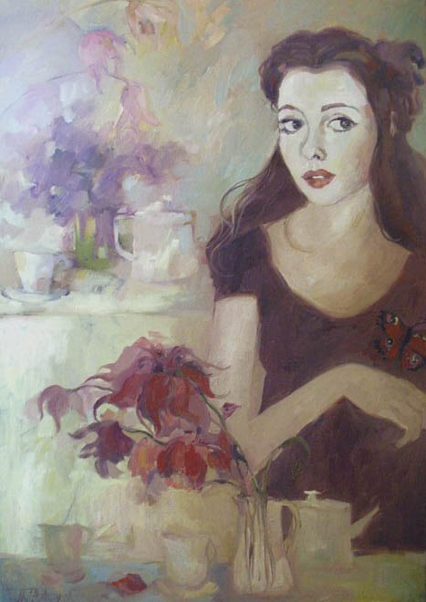 Błędem jednak byłby osąd, że malarstwo artystki jest podobne do tego, które uprawia jej mąż. Łączy ich umiłowanie do świata baśni, nierealności, ale jest to całkiem inne postrzeganie malarstwa. Artystka skupia się na swojej płci, ukazuje portrety kobiet, które są w zasadzie jej autoportretami. Na każdym z przedstawień widnieje młoda, delikatna kobieta ubrana w zwiewną sukienkę, wśród łąk, kwiatów, zamyślona, niekiedy smutna. Dziewczyna, która mogłaby żyć w teraźniejszości, ale przez staroświeckie ubranie, widz zaczyna sądzić, że to kobieta urodzona w fin de siecle, wśród cyrkowców, z pierotami, jako baletnica, poetka. Wiele twarzy pokazuje Mariola Ptak, wszystkie ukazują romantyczkę, gdzie kobiecość gra pierwsze skrzypce.