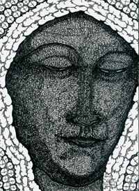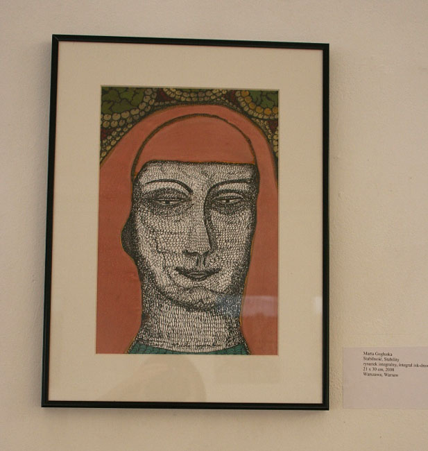 Na wystawie „Sztuka integralna” pokazane są rysunki głów. Twarze są psychodeliczne – składają się z malutkich kresek, kropek, kółeczek, przecinków, bardzo zróżnicowanych i precyzyjnych form, które tworzą piękne ornamenty - podobnie jak w twórczości Józefa Gielniaka. W pracach jest wiele odniesień – np. Madonny – jej ulubiony temat - przypominają malarstwo renesansu - zmysłowe twarze Leonarda da Vinci. Inne – podobne są do litografii o tematyce religijnej, jakie można spotkać w starej podwórkowej kapliczce. Kolor w nich jest uproszczony, nasycony, twarze Madonn natchnione i święte, wykonane jak z koronki. Jakby tego było mało Marta Gogłuska prezentuje swoje wiersze. To jeden z nich: