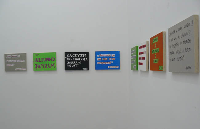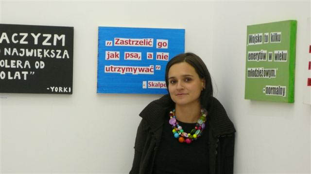 Nie ma wątpliwości, że gros komentarzy w internecie jest niezwykle prymitywna i głupia. Anonimowość wirtualnej sieci sprzyja wygłoszaniu absurdalnych i niedorzecznych sądów – osoby je piszące nie mają poczucia odpowiedzialności za wygłaszane opinie. Co więcej, często chcą po prostu zaczepić i zostać zauważonym. Przewrotnym gestem artystka umożliwia zaistnieć autorom komentarza w realnym świecie. Ze ściany galerii „bombardują” nas zdania typu: “Głupia wieśniara wypromowana przez telewizję” (o Edycie Górniak), “Wyrwać chwasta”, “Zastrzelićgo jak psa, a nie utrzymywać”, “Pewnie solidarnuchy rzuciły go pod pociąg. Kolejna ofiara panującego reżimu solidarnuchów” itp., itd. Tego rodzaju tekstami są tak naszpikowane różne fora internetowe, że w pewien sposób “uodparniamy” się na nie. Jednak zabieg, który zastosowała Kochanek-Zbroja, wprowadzenie tych komentarzy w sferę sztuki, stwarza arbitralną sytuację - z jednej strony zdania te rażą agresywnością ze zdwojoną siłą, z drugiej nadanana im forma każe spojrzeć na nie z dystansu. Ciekawe, jak zareagowałyby poszczególni autorzy komentarzy, gdyby zobaczyli je w tym nowym kontekście. Przypuszczam, że nie byliby zachwyceni, a może po prostu liczy się bycie zauważonym – to, o co walczą wypisując idiotyczne teksty. W każdym razie Kochanek-Zbroi projektem Moherowe berety udało się zwrócić naszą uwagę na ten społeczny problem w sposób lekki i niepretensjonalny.