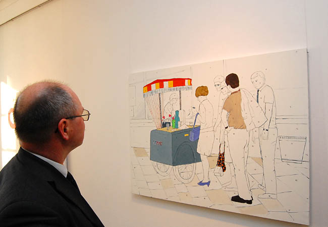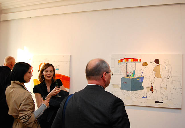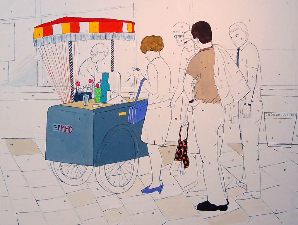 Okazało się natomiast, że w sferze prywatnych historii taki kontrast był niewielki. Oczywiście Polak był ubrany gorzej i jeździł na nartach marki Polsport, wnętrza polskich dworców były bardziej zgrzebne, a w sklepach na półkach leżała nicość, a na hakach wisiał pojedyńczy, smętny kawał słoniny. To znaczna część naszej historii, znamy ją i nie budzi ona zaskoczenia. Na Zachodzie było bogaciej, czyli w sensie malarskiem, bardziej dekoracyjnie. Niemniej jeśli spojżeć na obrazy Marty, tworzone w specyficznej dla niej manierze dziecięcej kolorowanki, to różnice nie są specjalnie widoczne.