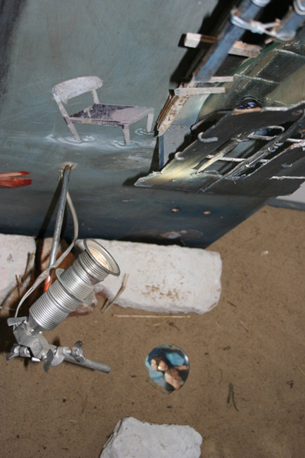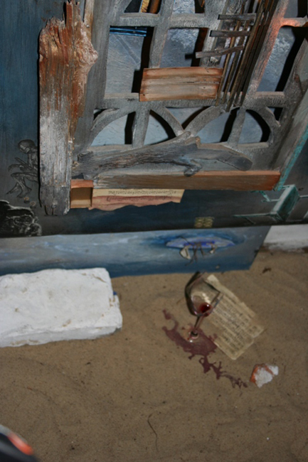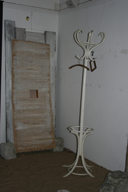 W pokoju drugim niespodzianka… piasek zamiast podłogi. Można poczuć się wakacyjnie, jak na nadmorskiej plaży. Jednak muzyka jaką wkomponował artysta nie koi zmysłów. To stukania, szurania, rozbijanie szkła i inne mroczne dźwięki , jak w starym zamczysku. W piasek wkomponowane są instalacje - jest tu tęsknota za dzieciństwem, kiedy do zabawy wystarczała deseczka, kawałek rozbitego szkiełka zakopanego w ziemi, zardzewiała sprężyna.