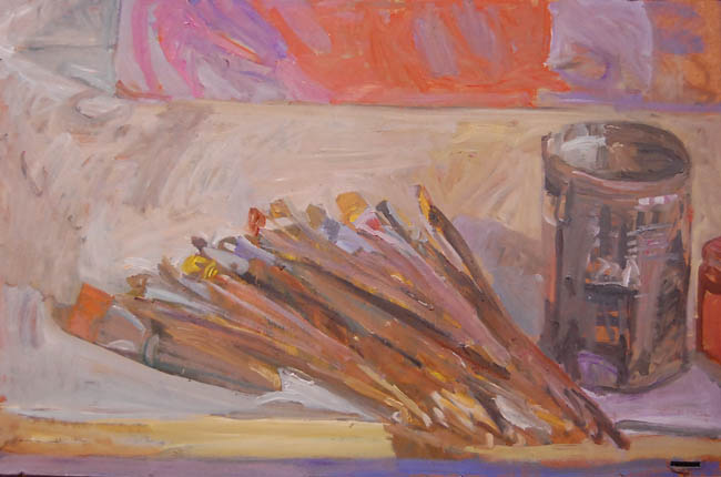 Wszystkie prace noszą wspólny mianownik, traktują o rzeczach codziennych, często wręcz dosłownie otaczających artystę - puszki farby, pęki pędzli czy naczynia. Obecne na wystawie portrety ludzkie, to także goście pracowni artysty, jego modele.