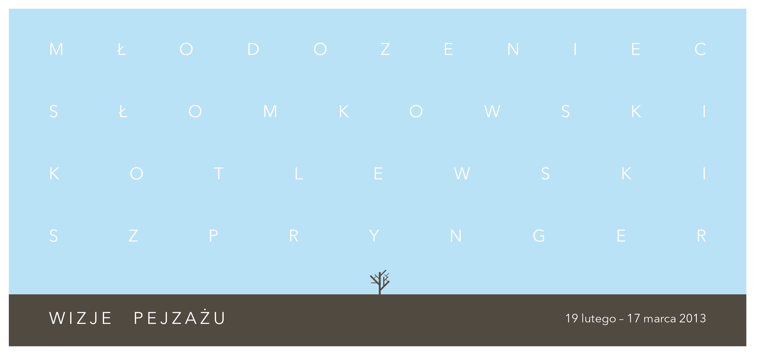 Na wystawie znalazły się prace artystów związanych z Domem Aukcyjnym Abbey House: Anny Szprynger, Jakuba Słomkowskiego, Stanisława Młodożeńca i Janusza Kotlewskiego. Dla każdego z nich pejzaż stanowi podstawowy temat malarski; różne są tylko jego ujęcia. Jakub Słomkowski najchętniej tworzy wielkoformatowe obrazy w stonowanej kolorystyce, na których dostrzec można: morza, wyspy i chmury. Stanisław Młodożeniec żongluje pejzażowymi konwencjami, niejednokrotnie tworząc abstrakcyjne kompozycje – tylko nazwa ujawnia ich pejzażową proweniencję. Janusz Kotlewski próbuje zgeometryzować krajobrazowy widok za pomocą typowej dla siebie metody malarskiej, polegającej na wylewaniu płynnej farby na płótno. Anna Szpryner wręcz przeciwnie – dba o każdą najcieńszą kreskę, od których roi się na jej płótnach. Artystka nie zostawia niczego przypadkowi. W jej pejzażach punktem odniesienia często staje się linia horyzontu.