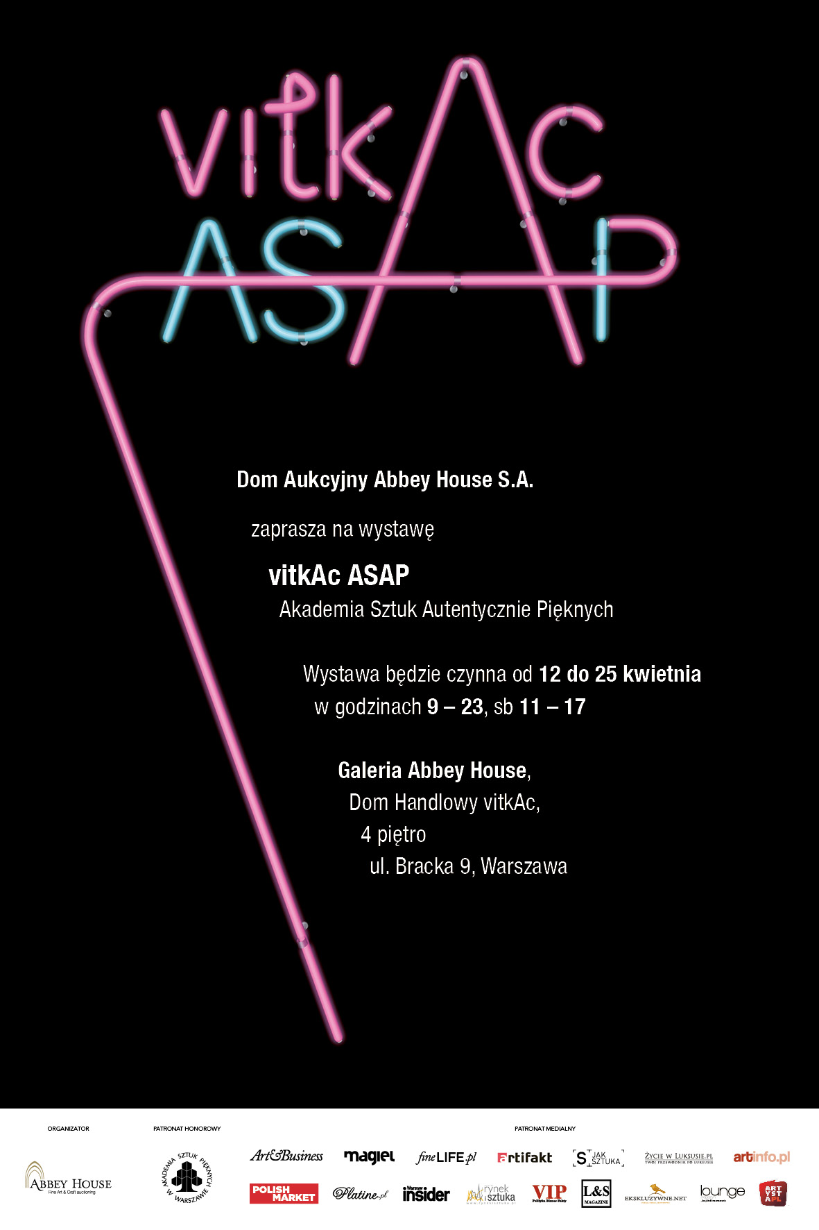 Wystawa „vitkAc ASAP” to inicjatywa Domu Aukcyjnego Abbey House, który w ten sposób chce wesprzeć młodych twórców stawiających pierwsze kroki na rynku sztuki. Możliwość wystawienia prac w ekskluzywnej przestrzeni Domu Handlowego vitkAc w założeniu ma przyczynić się do rozwoju karier młodych zdolnych artystów. Wystawa ma także zachęcić bywalców vitkAca do codziennych, inspirujących kontaktów ze sztuką.