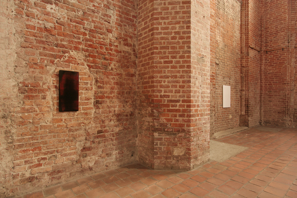 Tak jak Angelov adresuje swoje prace do wnętrza budynku, wchodzi w interakcje z jego historią, tak problemy artystyczne twórczości Pawła Zaręby sytuują się wokół problemu obecności artysty, jego śladu i nietrwałości tego śladu, jaki zostawia w obrębie dzieła. Paweł Zaręba od wielu lat tworzył malarstwo niemal monochromatyczne, głęboko fakturalne. Jego obrazy były zupełnie pozbawione odniesień do rzeczywistości. Wystawa w Elblągu jest, jak sadzę, przełomowa - bo Paweł Zaręba odchodzi od dotychczasowego malarstwa i prezentuje prace najnowsze - powstałe właśnie dla wnętrza Galerii EL.