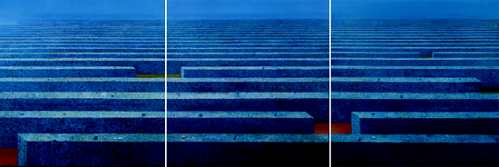 Tytuł wystawy sugeruje odłączenie - od prądu, głównego nurtu, off line. Czy poza siecią istnieje świat? W jaki sposób go percypujemy? Gdzie się znajdujemy, kiedy jesteśmy unplugged? Mimo, że strach przed niezałapaniem się, przed utratą informacji, odcięciem - jest jednym z największych lęków współczesności - unplugged kojarzy nam się z ulgą, spokojem, czymś kameralnym, bardziej intymnym, bliskim skórze – może prawdziwszym? Czymś elitarnym, co przedstawia nową wartość, jak „najmniejsze koncerty świata”, wieczór na gołej ziemi z gołą głową i boso. To pełniejsza komunikacja, bliższy kontakt na linii nadawca-odbiorca. Sugestia, że malarstwo jest ciepłym, wilgotnym medium (w odróżnieniu od nowych technologii). Obrazy pokazane przez Socato mają w sobie ten strumień ciepła, działają kojąco. Jest w nich rodzaj trudnej równowagi, buddyjskiego zawieszenia broni. Na obrazach Karoliny Jaklewicz formy odpychają się i przyciągają, są w stanie kruchej równowagi, balansu, który utrzymuje jakaś (nad)naturalna siła. Namagnesowane figury zawieszone w odległościach wytwarzają napięcie, które nie jest elektryczne (uplugged) – wynika raczej ze stosunku figur objawiających idealne proporcje. Jak ciała niebieskie na mapie nieba – księżyce, zjawiska i przedmioty, które zintegrowaliśmy jako „świat”. Rozpoznajemy więc te figury jako archetypowe. Inaczej o doskonałości mówi Daniel Krysta - używa do tego figury koła, które konkretyzuje jako metalowe fragmenty mechanizmów, abstrakcyjne detale, jakie wypadły ze snu o erze posttechnologicznej. Postindustrialne śmietnisko: w tym kontekście pojęcie unplugged mówi o rozczarowaniu współczesnością jako futurystycznym marzeniu o świecie bez czasu i śmierci. Rafał Borcz odłącza się w sposób najbardziej dosłowny – poprzez pejzaż, ostentacyjnie analogowy, nie-miejski, zredukowany do kilku detali, elementów takich jak drzewo, słońce, rzeka. Nadmiar impulsów atakujących wielkomiejskiego flaneura zostaje rozproszony w ścianie tiulu, mgle, mniej lub bardziej nasyconej bieli. To świat organiczny, ale odległy, surrealistyczny przez odrealnienie, wyabstrahowanie detali. Baśń, waldenowski sen o lesie bez cywilizacji i związanych z nią zagrożeń. Zaskakujące w tym kontekście są prace Michała Misiaka – psychodeliczne mandale, pulsujące membrany, radiowe fale w układach i jaskrawych, przemysłowych kolorach – kapitalnie kontrują narrację o bieli, wyciszeniu, dojrzałej doskonałości. Unplugged staje się tu samo malarstwo, powracające do źródeł, angażujące narzędzia, które bywało – wydawały się już archaiczne. Ten element, umowny wyłom w systemie, paradoksalnie jeszcze mocniej go spaja. Na płótnach toczy się mikro życie, życie w domyśle – stłumione, albo dopiero wykluwające się. Dlatego uwagę przykuwa obraz Łukasza Huculaka, na którym artysta umieścił postać – przykucniętą w teatralnej pozie i przebraniu, wykonującą jakiś surrealny ruch. Mężczyzna dotyka końcem wskaźnika astralnego ciała, transparentnej materii. Jakby tresował amorficznego ducha, jakby ten hologram, powidok, wywiązywał się z metalowego prętu. Widz ma wrażenie, że to seans spirytystyczny albo doświadczenie alchemika. Jego treść pozostanie zagadką, wyczerpuje się w intrygującym obrazie. W Socato pokazano także prace Wojciecha Lupy, wielkoformatowe abstrakcje, ekrany bieli, zza których przeziera to, co ukryte pod podszewką rzeczywistości potocznej. Opowieść zamykają postindustrialne narracje Joanny Pałys, która dotkliwie pokazuje melancholię wielkomiejskiej architektury. Strzeliste przęsła mostu jako postnowoczesny gotyk - monumentalna historia o tęsknocie za absolutem. I na koniec – kamienny labirynt Stanisława Kortyki: nierzeczywisty, nieruchomy. Kres podróży flauneura eksplorującego metropolię. Zgaszone światło, żadnego ruchu. To ostatnia stacja: unplugged.