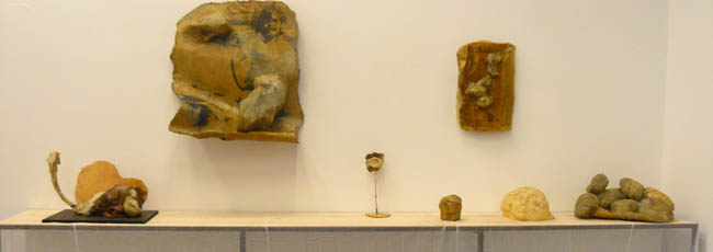 Prace Szapocznikow to przede wszystkim cielesność ewokująca kobiecą zmysłowość, dlatego działają one niezwykle silnie na emocje. Jednak to cielesność niejako zraniona, pokawałkowana , rozbita (aspekty te widoczne są szczególnie w pracay „Pamiątka z weselnego stołu szczęśliwej kobiety”). Jakby artystka nieustannie pytała o swoją tożsamość i poddawała ją w wątpliwość. Te zmultiplikowane odlewy ust artystki, piersi, brzucha... (często wykonane w niewyeksploatowanym wcześniej przez artystów materiele - poliestrze). Jednocześnie Szapocznikow prezentowała je w zaskakującej formie implikującej kolejne konteksty, by wspomnieć chociażby prezentowane na wystawie słynne dzieło „Wielkie brzuchy” o monumentalnych rozmiarach, „Deser”, na który składają się odlewy z piersi, czy też „Usta iluminowane” będące lampami z odlewów ust (udany mariaż sztuki i wzornictwa przemysłowego).
