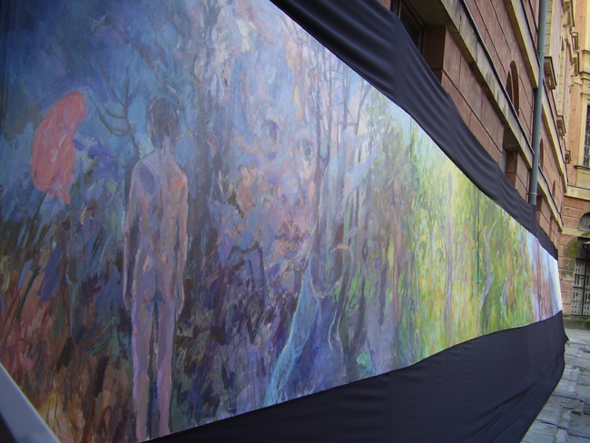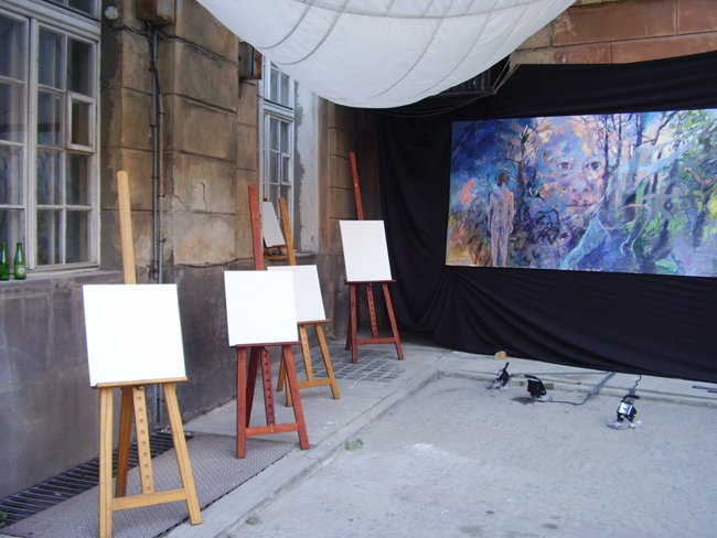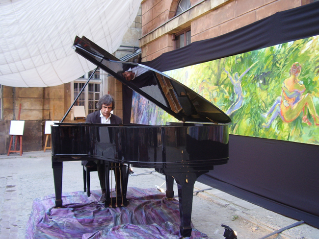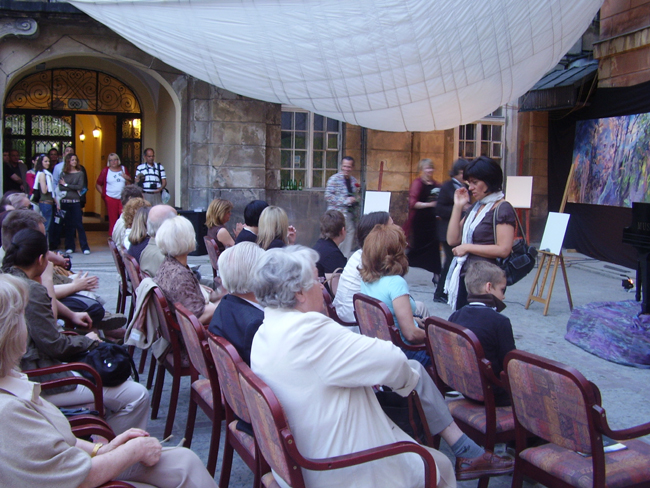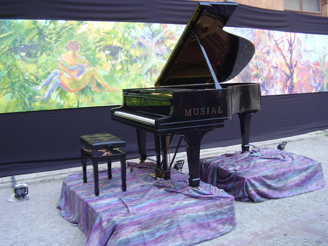 Na dziedzińcu galerii widzowie wysłuchali koncertu fortepianowego w wykonaniu Janusza Kohuta. W tle zaprezentowano 22 metrowej długości kompozycję malarską Mariusza Kałdowskiego. Obraz Cztery pory roku. Cztery pory życia powstał pod wpływem fascynacji muzyką Vivaldiego. Płótno prezentowane wraz z wykonywanymi utworami muzycznymi poszerzyło możliwości odbioru jego treści, poznanie i zrozumienie natury ludzkiej, wpisanej w cykliczny charakter przyrody. W efekcie powstała nowa jakość integrująca przestrzeń myśli, barw i muzyki. Koncepcja wspólnego projektu Janusza Kohuta i Mariusza Kałdowskiego „malowania muzyki” zapoczątkowana została kilka tygodni temu w Londynie, gdzie Kałdowski mieszka i tworzy od dziesięciu lat.