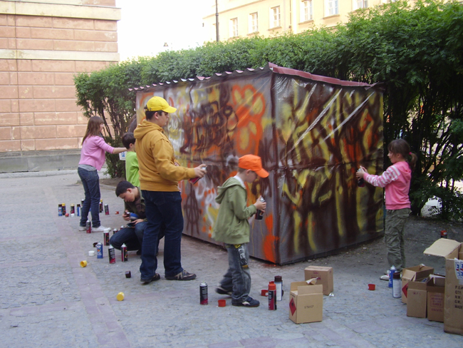 Atrakcją, z której licznie i chętnie korzystały dzieci i młodzież był zorganizowany happening - spontaniczne malowanie wyznaczonej przestrzeni. W programie zaplanowane były również warsztaty malarskie prowadzone pod kierunkiem Mariusza Kałdowskiego, zakończone konkursem z nagrodami.