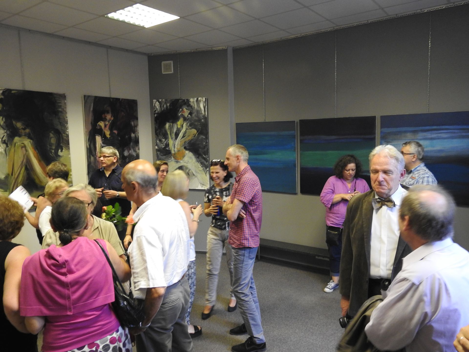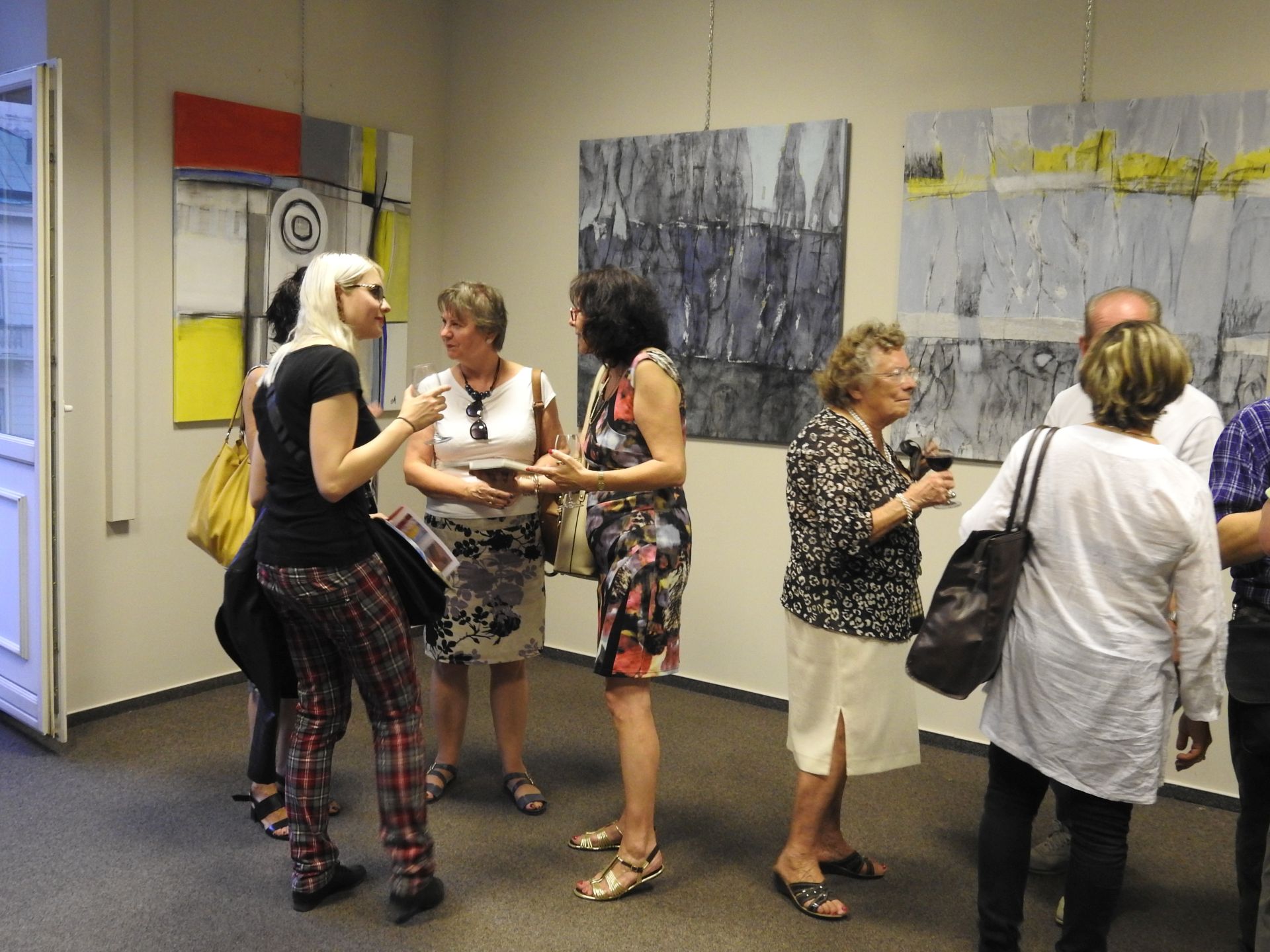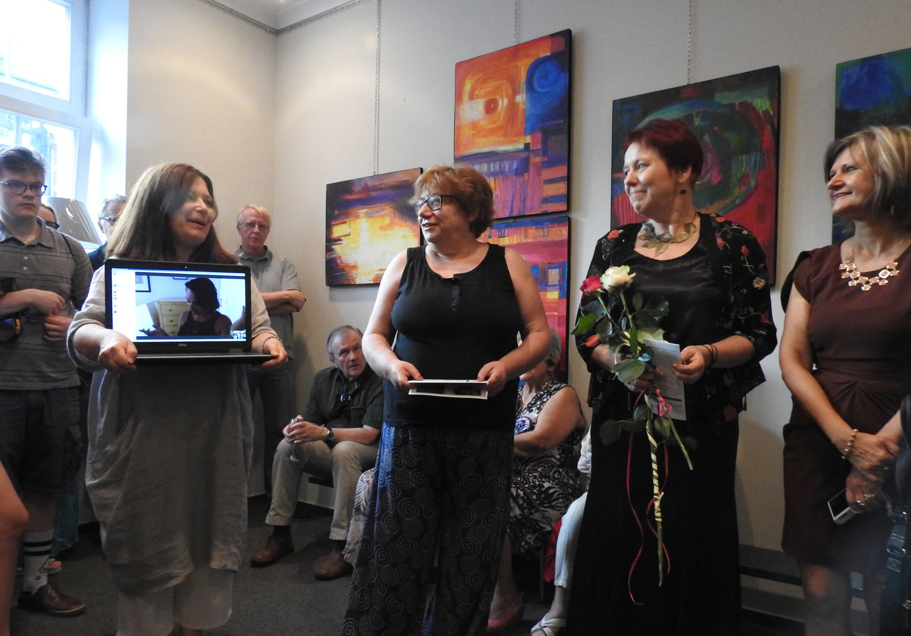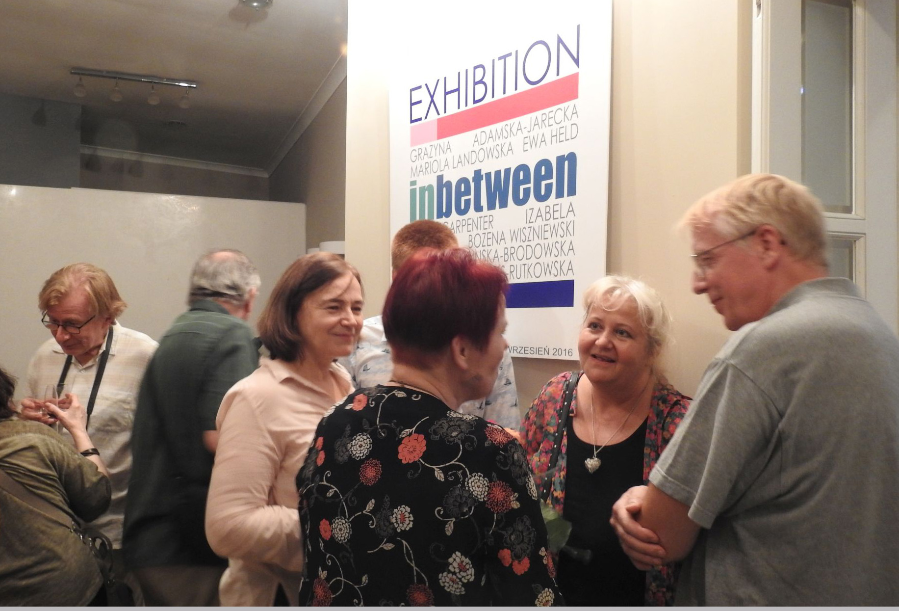 W wystawie uczestniczą: Grażyna Adamska-Jarecka (Toronto), Anna Carpenter (Warszawa), Dorota Cieślińska-Brodowska (Warszawa), Aleksandra Hajdas-Rutkowska (Warszawa), Ewa Held (Paryż), Izabela Katreniok (Nowy Jork), Mariola Landowska (Lizbona), Bożena Wiszniewski (Melbourne). Do powstania ich nieformalnej grupy przyczyniły się media społecznościowe, ułatwiając ożywienie relacji powstałych podczas studiów w warszawskiej Akademii Sztuk Pięknych i nawiązanie nowych artystycznych znajomości. I nie jest to tylko signum temporis. Ten wirtualny rodowód grupy to także swoiste in-between.