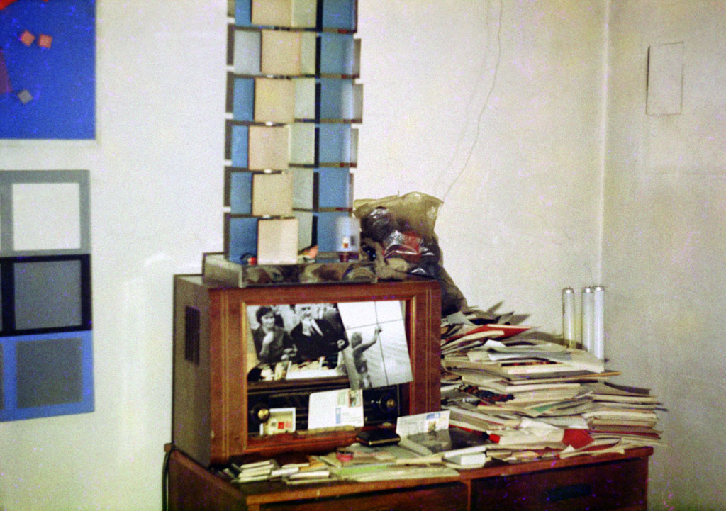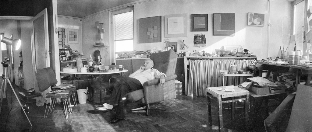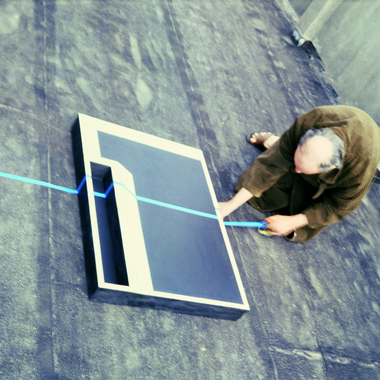 Prace pochodzą z prywatnej kolekcji Marka Niemirskiego. Są geometryczne, wyciszone reliefy z blachy, w szlachetnym złotym kolorze, przypominające biżuterię. Są też obrazy olejne, minimalistyczne, malowane gładko kwadraty.