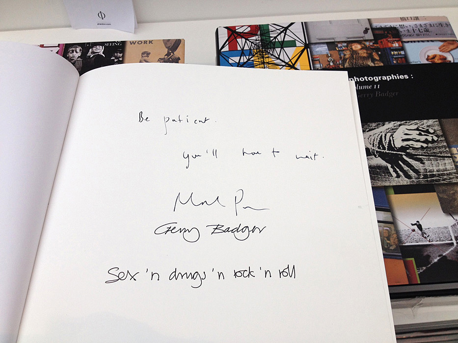 Także o książkach była mowa podczas spotkania z Martinem Parrem i Gerrym Badgerem w ramach programu PLATFORM. Autorzy prezentowali trzecią część swej serii The Photobook: A History, która wiosną 2014 roku ukaże się nakładem wydawnictwa Phaidon. Tymczasem na stoisku wydawnictwa można było się wpisać do swoistej „makiety” książki, w której na pierwszej stronie autorzy zamieścili dowcipną notatkę: Be patient. You’ll have to wait. Sex’n drugs’n rock’n roll.