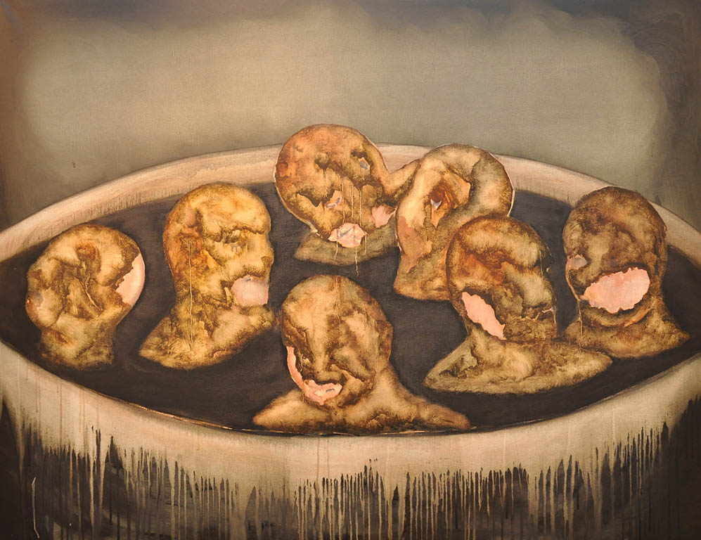 Refleksja o nietrwałości życia, rozkład, destrukcja pojawiają się na płótnach Michała Jankowskiego. Widzimy drastycznie zniekształcone ciała ludzkie, szczątki – relikwie czy twarz człowieka obleganą rojem, zbiorowiskiem mrówek (m.in.: Turysta, Zupa, Relikwia). Rozmyte brunatne brązy, ciemne ugry i żółcienie potęgują wrażenie napięcia egzystencjonalnego, dramatu przemijania.