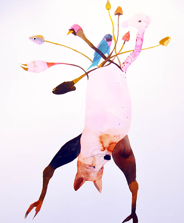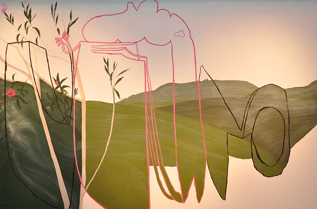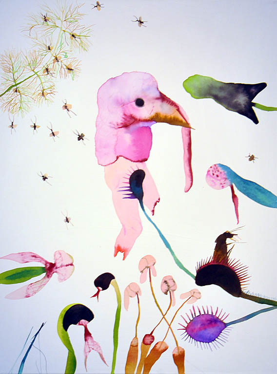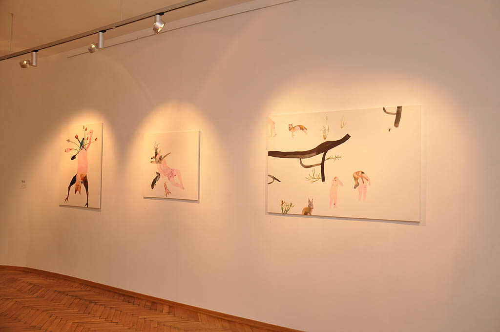 Artyści posługując się własnym językiem wypowiedzi, wybranym medium malarstwa, fotografii, filmu czy rysunku, stworzyli odrębne całości. Zaprezentowane na wystawie prace stanowią swoisty zapis z podróży, wizualny pamiętnik z pleneru, powstały w wyniku subiektywnej obserwacji świata i indywidualnej kreacji twórczej. Prace malarskie Basi Bańdy utrzymane w charakterystycznej dla niej stylistyce ukazują fantastyczny świat flory i fauny, w którym istnieją antropomorficzne, hybrydalne twory (m.in.: Trucizna, Ciężka, Morze). Artystka modyfikuje, okalecza ludzkie ciała, implantuje, wplątuje w ich budowę zwierzęta, pokrywa robakami toskańskimi. Różnicuje kolorystykę i formy, zestawia miękkie kształty różowych ciał z ostrymi, ciemnymi, kolczastymi roślinami. Wykorzystywana przez artystkę technika malowania łącząca akwarelę, akryl i ekolinę pozwala uzyskać delikatne i rozmyte tony barwne o płynnej linii konturów. Efekt transparentności podkreśla biel płaszczyzny płótna stanowiąca neutralne tło dla fantastycznych scen.