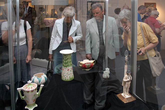 Wystawa prezentuje przedmioty sygnowane nazwiskami największych artystów pochodzących z polskich i zagranicznych ośrodków. Odwiedzający zobaczą grupę naczyń ze szkła iryzującego m.in. solniczkę (L.C. Tiffany), wazon oraz bombonierkę ze szkieł warstwowych z motywem gałązek kwitnącej wiśni (E. Gallé), wazon z kutego mosiądzu projektu współzałożyciela Warsztatów Wiedeńskich - Josefa Hoffmanna, serwis do kawy inspirowany formą ludowych naczyń podhalańskich, zaprojektowany przez Jana Szczepkowskiego, kierownika artystycznego znanego zakładu ceramicznego w podkrakowskich Dębnikach. Wreszcie kunsztownie wykonany w tej samej firmie (J. Niedźwiecki i Ska) wazon z motywem liści kasztanowca (proj. Karol Brudzewski).