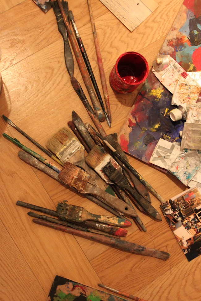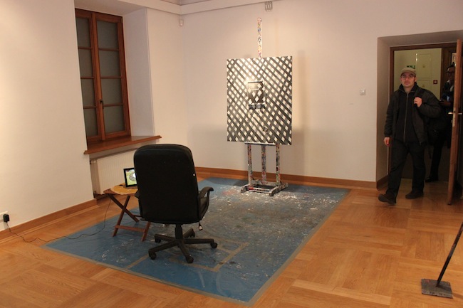 Wkraczamy do często bardzo intymnej, przestrzeni twórców. Do miejsca, gdzie tylko zaufani mają dostęp. Dowiadujemy się jak powstają ich prace malarskie - od konceptu poprzez szkice, notatki, aż po gotowe obrazy. Ale też zwykłe przedmioty potrzebne przy tworzeniu - sztaluga, pędzle, farby, skrzynki na narzędzia, czy fotel. Jedną z bardziej przejmujących prac jest niewielkie zdjęcie pracowni Aradiusza Karapudy, która spłonęła podczas pożaru na warszawskiej Pradze.