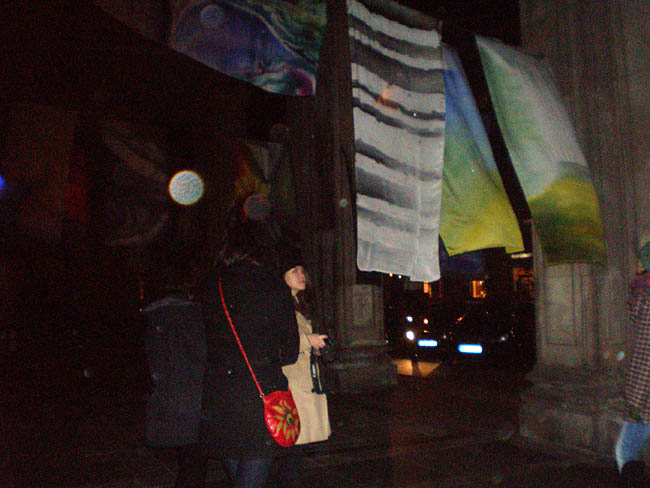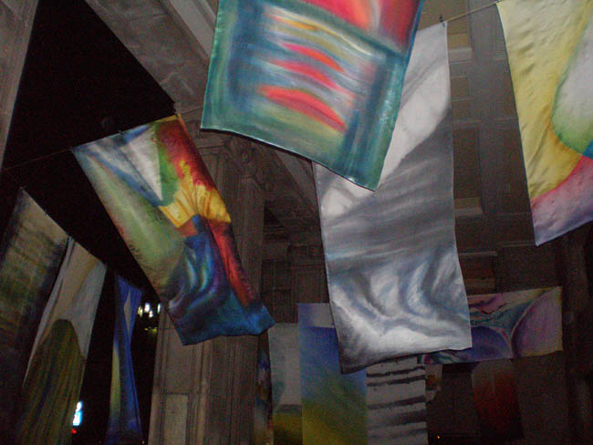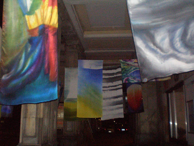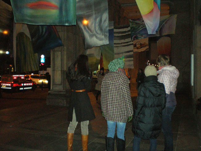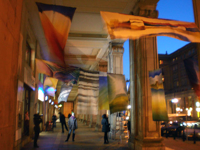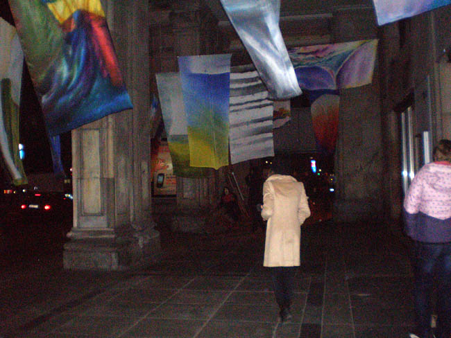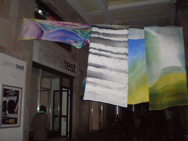 Pokaz warszawski miał miejsce 19 grudnia w Galerii TEST przy MDM i rozpoczął się od rozwieszenia w otoczeniu Galerii wielokolorowych płócien, barwnych flag. W artystyczny happening zaangażowana została także publiczność, w tym przypadkowi przechodnie. Twórcami prac są młodzi artyści - absolwenci Akademii Sztuk Pięknych i Studium Fotografii Wydziału Operatorskiego PWSFTViT w Łodzi, a także studenci Wydziału Sztuki Mediów i Scenografii Akademii Sztuk Pięknych w Warszawie. Są wśród nich: Marcin Bielski, Alina Bloch, Zuzanna Gąsiorowska, Karolina Kant, Jan Kośmieja, Julia Krywycz, Monika Maciejewska, Aleksandra Pachnik, Ilona Piwońska, Anahita Rezaei, Karolina Siemion, Jan Siemion, Łukasz Sójka, Michał Wielowiejski i Monika Woźniak. Opiekę nad projektem sprawuje Alina Bloch. W Warszawie ulicznemu happeningowi i prezentacji prac towarzyszył pokaz dokumentacji fotograficznej projektu, który miał miejsce w Galerii TEST.