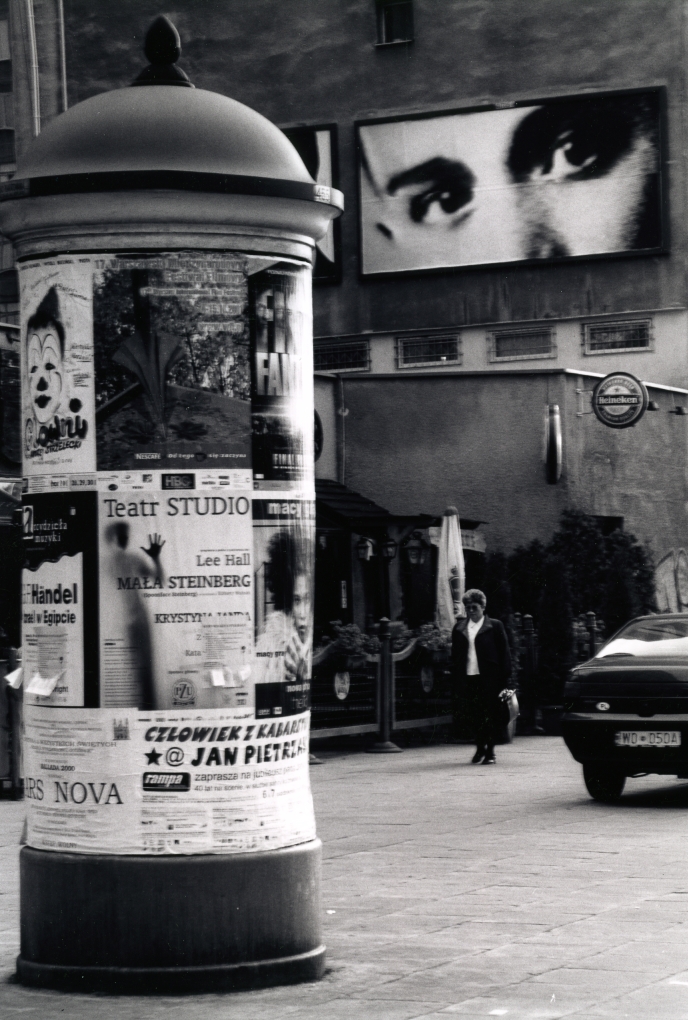 40 billboardów towarzyszących monografii Christiana Boltanskiego, pod wspólnym tytułem Świadek (2001) wywoływało niepokój - para gigantycznych oczu surowo spoglądała na przechodniów z plansz ze zwykłymi reklamami, ze ścian budynków, z parkanów. I nawet jeśli ktoś nie odgadł, że autorowi chodziło o przypomnienie losów getta i jego mieszkańców, robiło się jakoś nieswojo. I akcent szczególny - fotografie dwóch znakomitych instalacji powstałych przy okazji jednej z pierwszych pamiętnych ekspozycji w CSW. Rok 1990, Raj utracony. Sztuka polska w roku 1949 i 1989, a zamek jeszcze w stanie surowym, co akurat konweniowało z sytuacją oraz pracami Grzegorza Klamana (koślawa „wieża” z arkuszy blachy) i Jerzego Kaliny (kilkadziesiąt łopat z czerwonymi trzonami, wbitymi w ziemię dziedzińca).