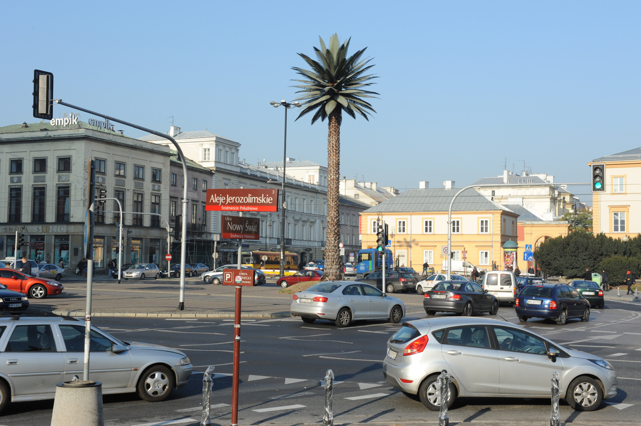 Palma Joanny Rajkowskiej w Alejach Jerozolimskich wyrosła przy Rondzie de Gaulle’a już 13 lat temu i ma nawet swoje archiwum fotograficzne, tworzone spontanicznie przez anonimowych przechodniów i turystów. Niemal w tym samym czasie japoński artysta Tadashi Kawamata wykopał i uzdatnił XIX-wieczne piwnice przed zamkiem. Wejście do tajemniczego podziemia zostało zadaszone, a same lochy zaadaptowane na potrzeby sztuki. Idąc do CSW głównym traktem prowadzącym do wejścia, nie sposób nie zauważyć rozstawionych tam dziesięciu kamiennych ław. Wyryte na nich Teksty o przetrwaniu i Truizmy ułożyła w 1999 roku Jenny Holzer, amerykańska artystka konceptualna. To trwała pamiątka po jej obecności w Warszawie.