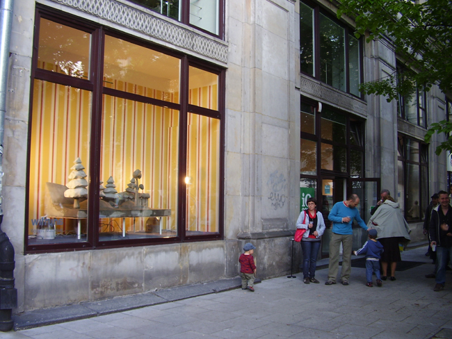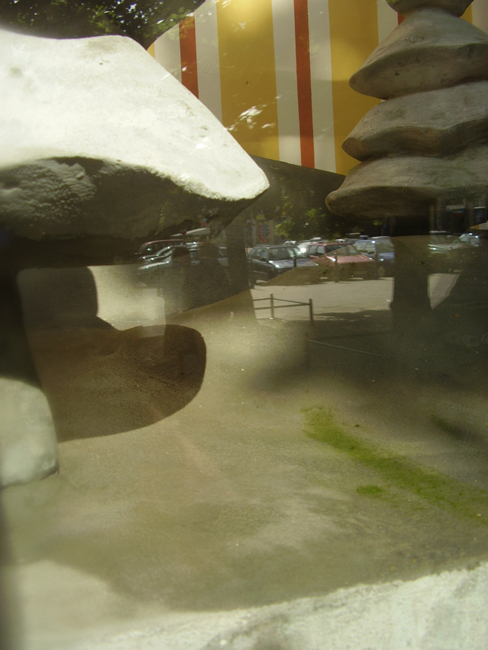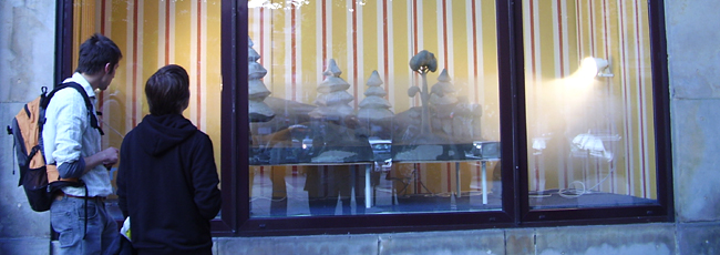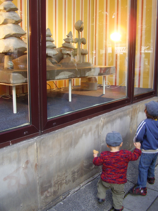 To cytat zaczerpnięty z wiersza Philipa Larkina, w którym poeta opisuje podróż prowadzącą przez jego miejsce urodzenia. Robert Maciejuk wyrusza we własne poszukiwania twórcze. Artysta na zasadzie repetycji sięga po wyizolowane motywy zaczerpnięte z własnej twórczości, tym razem nie posługując się tradycyjnym medium – malarstwem. W niewielkiej, zaaranżowanej przestrzeni Witryny zrealizował formę rzeźbiarską, którą umieścił we wnętrzu pokoju Misia Uszatka. Precyzyjnie odtworzył elementy bajkowego pejzażu pozbawionego figurek, postaci bohaterów dobranocek. Stworzona kompozycja rzeźbiarska nie jest jednak wiernym odzwierciedleniem wizji filmowego kadru. Praca pokazana w Witrynie przybrała formę eksperymentu. Rzeźba została poddana czynnikom imitującym proces nawilżania i nasłoneczniania. Założenie artysty powiodło się, widok pierwotny uległ przekształceniu, zaistniał wygenerowany proces porastania zielonym nalotem.