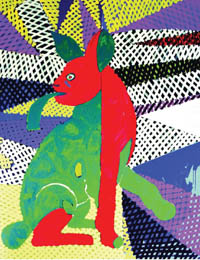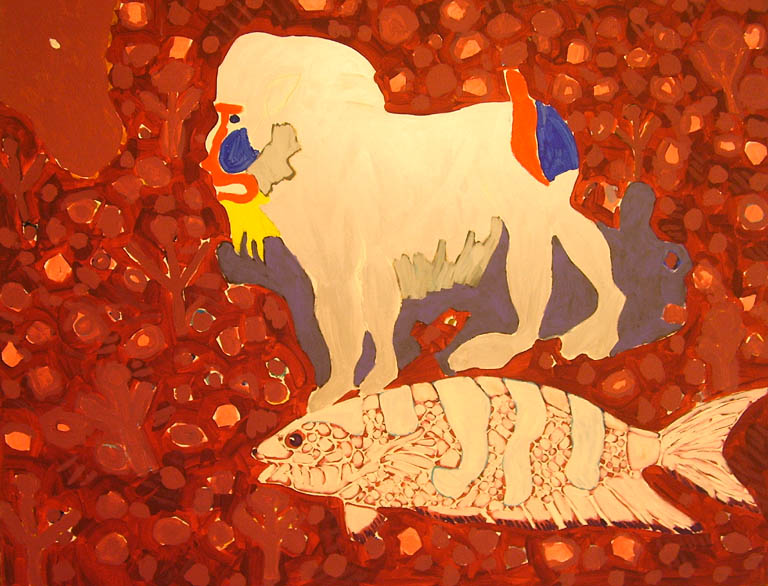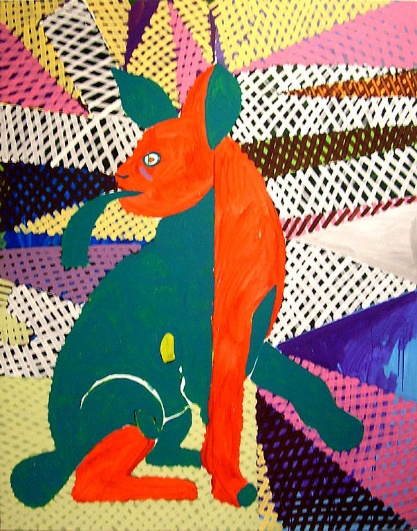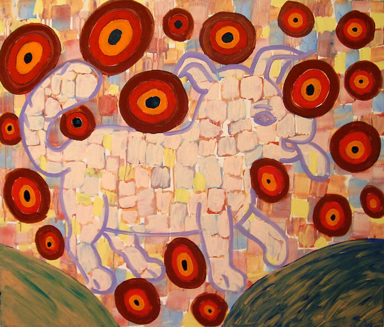 Grzyb kreuje subiektywne wizje, fantazmagoryczne w wyrazie, w których ukazuje świat zwierząt chwiejny w liniach, deformowany w kształtach, syntetyczny w formie. Na powierzchni płócien rozstrzyganych różnorodnymi możliwościami barwnymi pojawiają się sylwety nosorożca, żółwia, królika czy psa Stafika. Wyobrażenia zwierząt przeplatane z niedookreślonymi formami tworzą niemal dekoracyjne kompozycje. Trudno jednoznacznie określić czy tytuły obrazów są przewodnikami w odczytaniu ich przekazu, czy też przewrotnym zabiegiem nie pozwalającym na łatwe poruszanie się w tym niekonwencjonalnym świecie, np. Ostrokot, Wspinaczka 4 złotych palm. Wystawie towarzyszy pokaz filmu ukazujący obszar zainteresowań artysty: kadry z pracowni w czasie pracy twórczej, fascynację sztukami walki, przegląd prac, gdzie forma malarska i przekaz poetycki łączą się w jeden obraz.