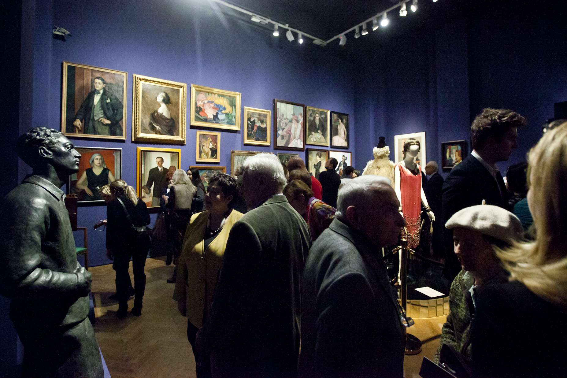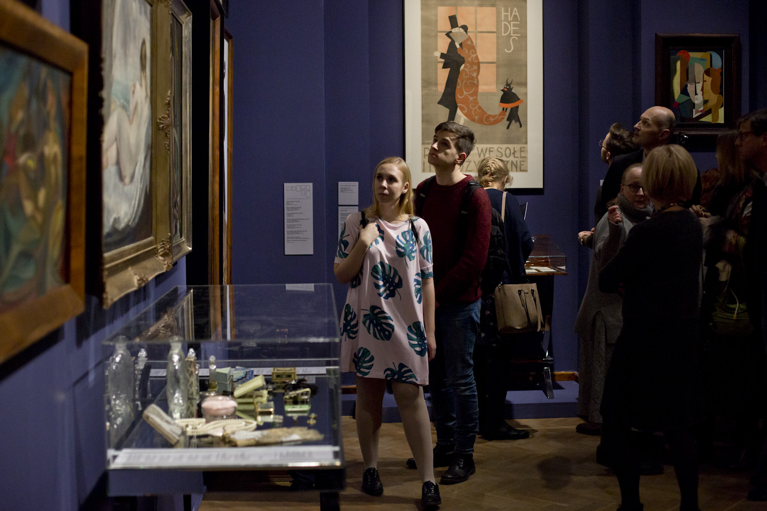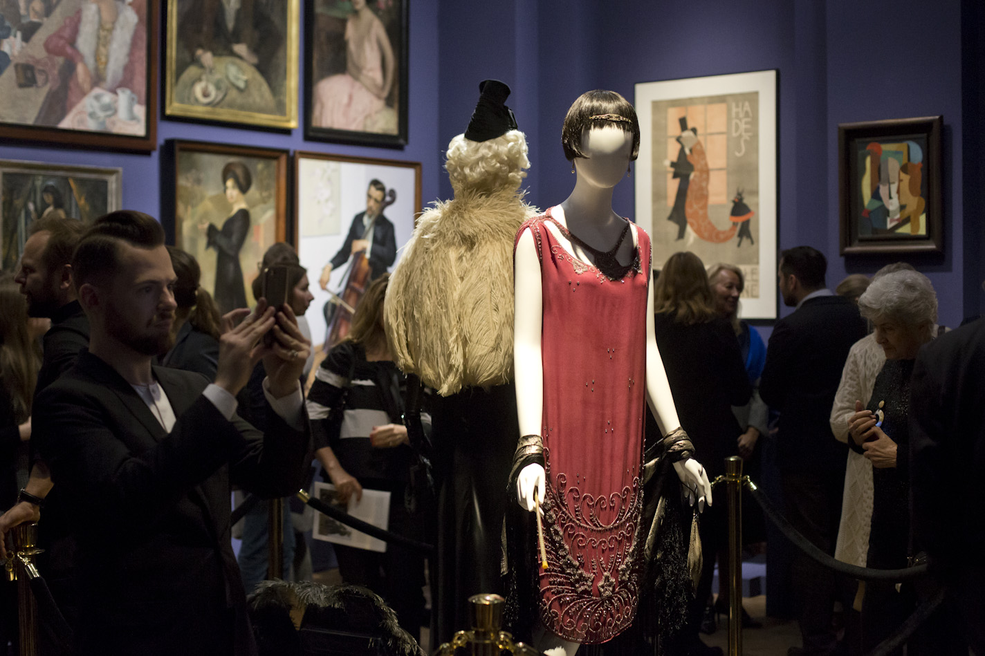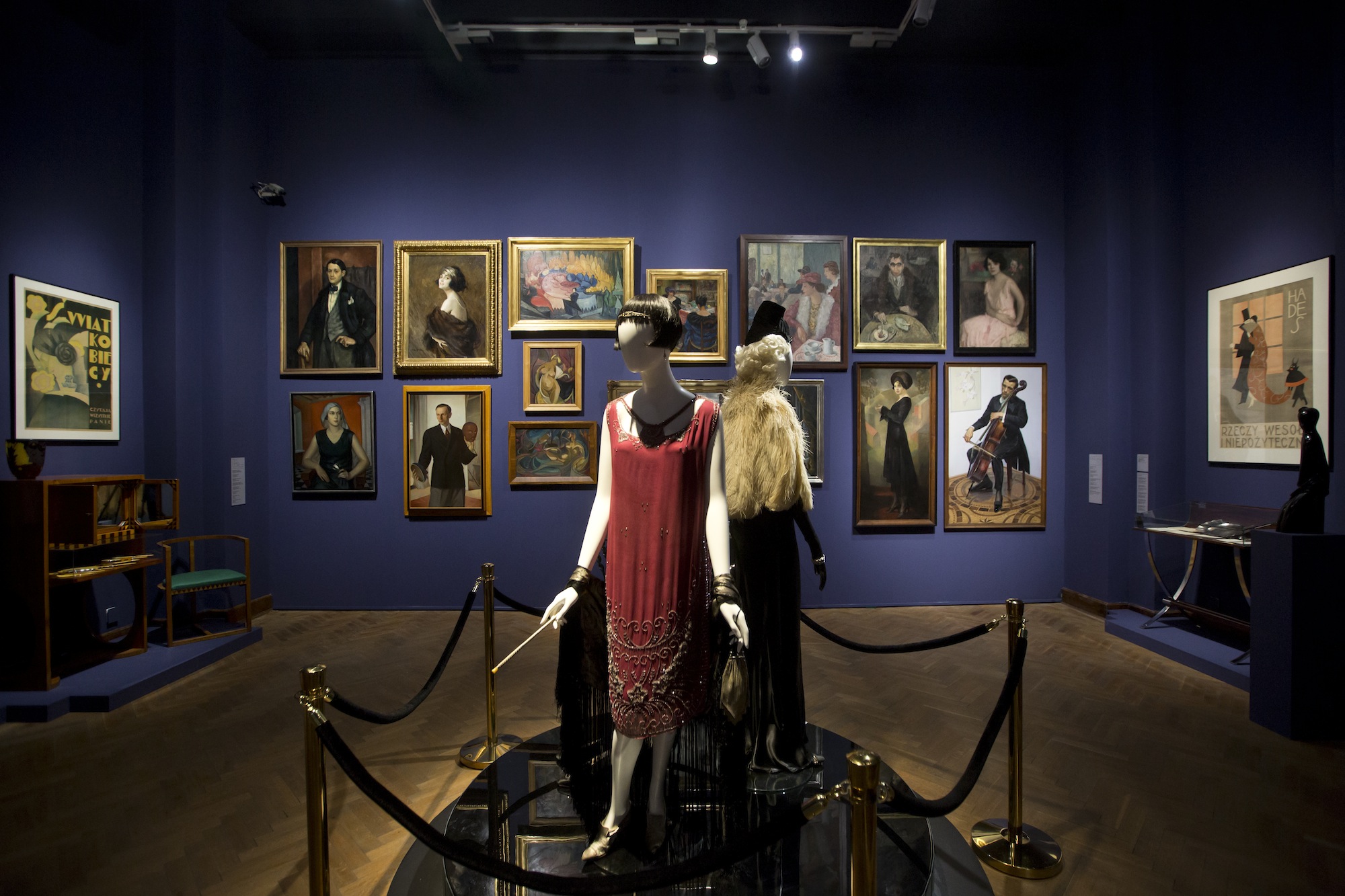 Prezentowane obrazy, rzeźby, meble, plakaty, zaproszenia oraz stroje i przybory toaletowe przenoszą widza w klimat przygotowań do balu w Warszawie okresu międzywojennego. Eksponaty pochodzą ze zbiorów Muzeum Narodowego w Warszawie, uzupełnione o dzieła z kolekcji członków Stowarzyszenia „Przyjaciele MNW”, Agnieszki i Marka Roeflerów, zbioru dzieł artystów polskich związanych z École de Paris, oraz Adama Leja, historyka sztuki, posiadacza największej w Polsce kolekcji ubiorów dawnych, którym opiekę kuratorką zapewniła Renata Higersberger, kustosz w Zbiorach Sztuki Polskiej MNW.