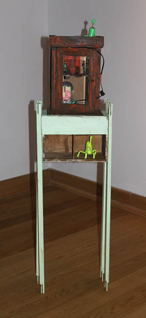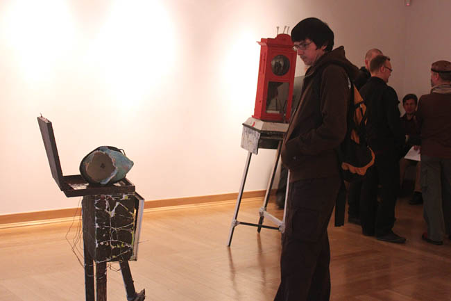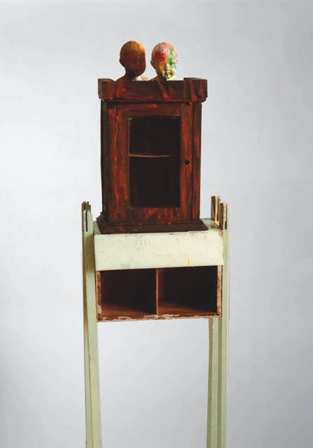 Staszek Wójcik łączy malarstwo z rzeźbą. W Galerii Promocyjnej na wystawie Tożsamość artysta prezentuje kilkanaście obrazo-przedmiotów, które nazywa Kapliczkami.