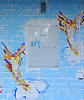 Flagę nie tyle wciągano, co wessano odkurzaczem. Wielokolorowe proporce -flagi tego autora, bardziej tradycyjne, zawieszono wcześniej w świetliku dachu galerii.