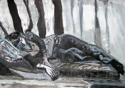 W galerii Abakus w Stołecznym Centrum Edukacji Kulturalnej wystawa studialna jest jak najbardziej na swoim miejscu. Wszystkie prace Sylwii Zgłobickiej są właśnie studiami postaci ludzkiej we wszystkich możliwych pozycjach – stojącej, siedzącej, leżącej, w pochyleniu, ze zgiętym tułowiem, w rewersem w lustrzanym odbiciu – i w trudnych do namalowania układach kończyn.