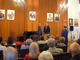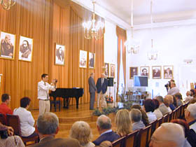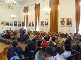 Sala koncertowa Podchorążówki, nie mała przecież, wypełniona została po brzegi, a miejsc siedzących zabrakło. Wśród gości znaleźli się liczni przedstawiciele środowiska artystycznego, intelektualiści i dziennikarze. Na sali byli m.in. Jan Dobkowski, Jan Pietrzak, Wiesław Ochman, Wojciech Siemion, czy Szymon Bojko. Wernisaż uroczyście otworzył Dyrektor Łazienek Królewskich prof. Marek Kwiatkowski, rówieśnik bohatera spotkania, co stało się pretekstem nie tylko do oficjalnych laudacji, ale także do snucia zupełnie prywatnych wspomnień z powojennej Warszawy. Wśród przemówień na plan pierwszy wybijały się barwne anegdoty z różnych zakątków świata, jakimi sypał, jak z rękawa, Tadeusz Łapiński. Wśród nich pojawiły się poważne i doniosłe gratulacje m.in. składane przez attache amerykańskiego, w imieniu honorowego patrona wystawy Ambasadora USA w Polsce Victora Ashe. Ambasador był osobiście nieobecny z powodu obowiązków związanych z najważniejszym amerykańskim świętem narodowym - Dniem Niepodległości. Myśl niepodległościowa, w takim miejscu jak Muzeum Wychodźstwa, i w obliczu wystawy wybitnego polskiego twórcy, realizującego swoją sztukę przede wszystkim poza krajem, była częstym tematem nawiązań i wypowiedzi samego Łapińskiego oraz jego gości. Nie zabrakło też słów uznania nadesłanych listownie przez Prezydenta Uniwersytetu Maryland, gdzie od wielu lat Łapiński pełni funkcję profesora. Wojciech Siemion, wielbiciel twórczości artysty, wizytujący każdą jego ekspozycję, czego zresztą nie taił, spontanicznie uświetnił wernisaż przygotowanymi specjalnie na tę okazję tekstami poetyckimi i literackimi, nawiązującymi tematyką do zagadnień sztuki i barw. Publiczne wyrazy uznania dla artysty złożyli też Wiesław Ochman i Szymon Bojko. Dodać trzeba, że wystawa Tadeusza Łapińskiego została także objęta honorowym patronatem przez Ministra Kultury i Dziedzictwa Narodowego Kazimierza Michała Ujazdowskiego.