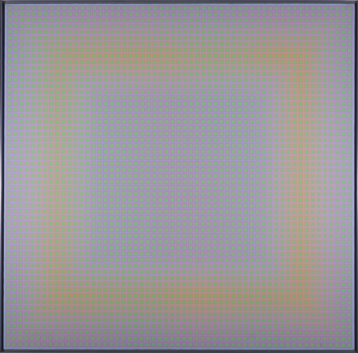 po prawej: Kajetan Sosnowski, Układy równowartościowe, 1982-1987, obraz szyty, 95 x 95 cm