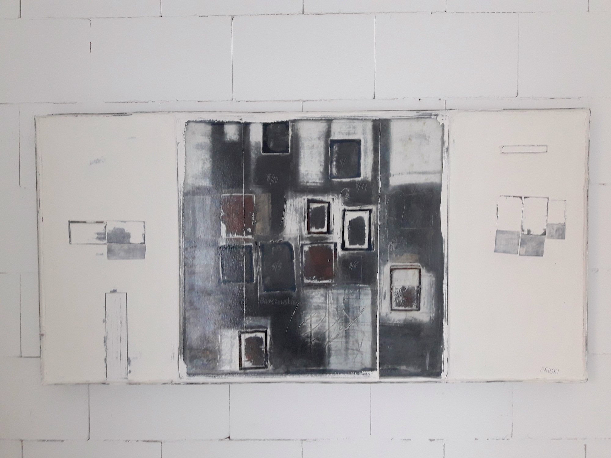 Ascetyczne, zintelektualizowane, skonceptualizowane, dosłownie - obiektowe artefakty klasyków sztuki lat 70.-80. minionego stulecia, zestawione zostały z wrażeniowymi, intuicyjnymi, wysmakowanymi w kolorach i efemerycznej formie pracami tradycyjnie tworzącego malarza. Ustrukturyzowane geometryzujące formy klasyków, ograniczone w kolorystyce do bieli-czerni, monochromu, celowo skontrastowaliśmy z feerią barw, plam świateł i koloru na bieli płócien, przedstawiciela młodszej generacji (prace z 2017 r.).