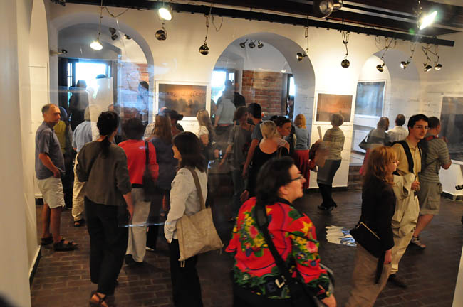 Wielkoformatowe fotografie przedstawiające pejzaże, przetasowane są wiszącymi przeźroczystymi arkuszami z pleksi. Zapełnione są one ręcznym pismem. Trochę niby od niechcenia, zostały naniesione słowa poezji Renaty Plagi. Potrzebna jest chwila skupienia, by treść dotarła do zwiedzającego, ale warto przystanąć na chwilę i poczytać. Widz lawiruje pomiędzy fotografiami a zawieszonymi arkuszami z poezją.