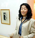 Sama artystka, choć po polsku mało mówi, w przyjacielski sposób przywitała i zaprosiła wszystkich do oglądania prac - z uśmiechem wykonała głęboki ukłon w kierunku sali.