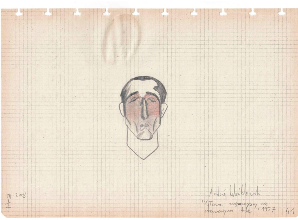 Na wystawie są też rysunki. m.in. Tomka Kowalskiego, którego surrealistyczna postać z butami na nogach i rękach kojarzy się z oficerem z jednego z „Rozstrzelań”.