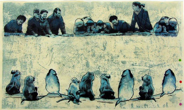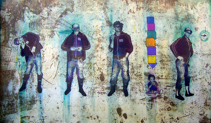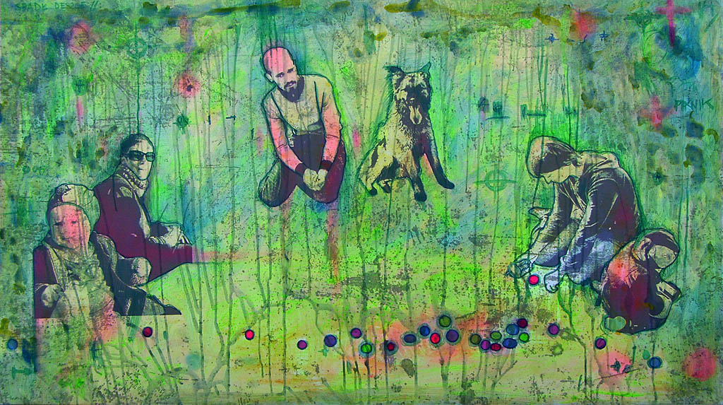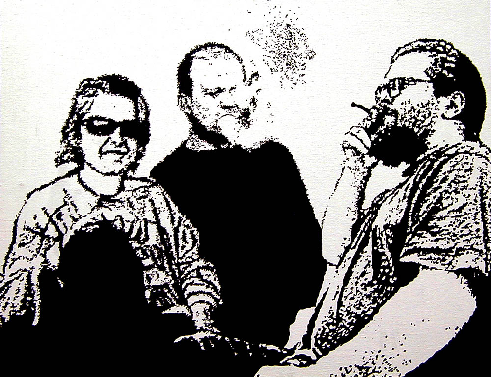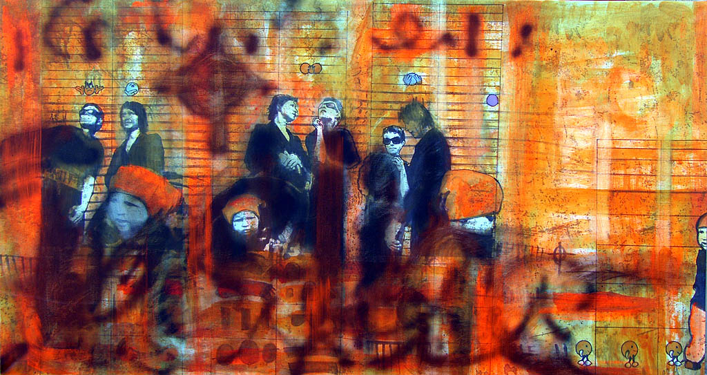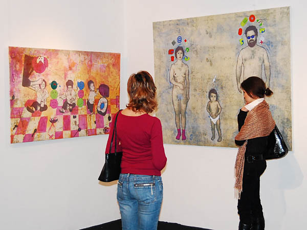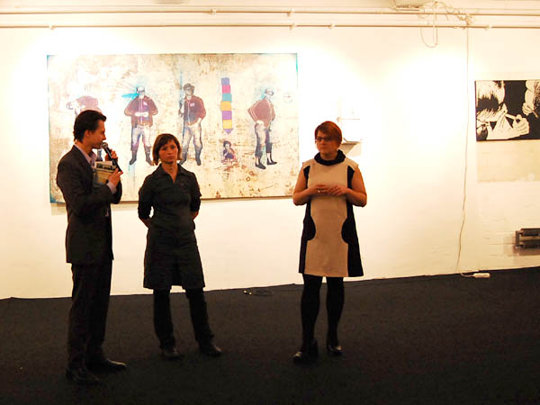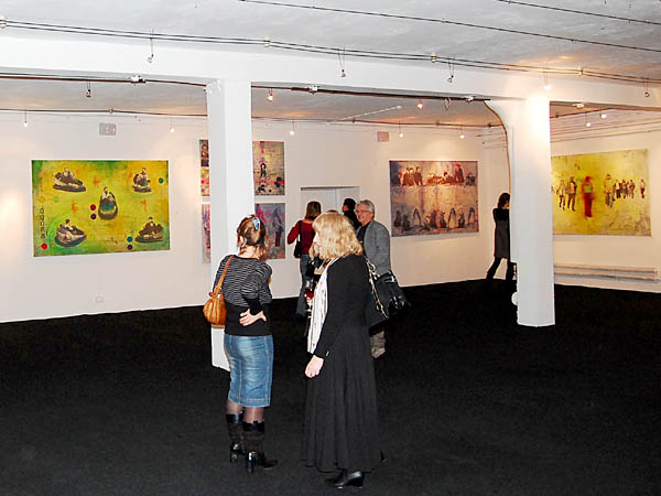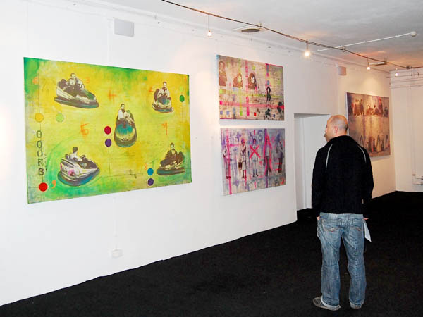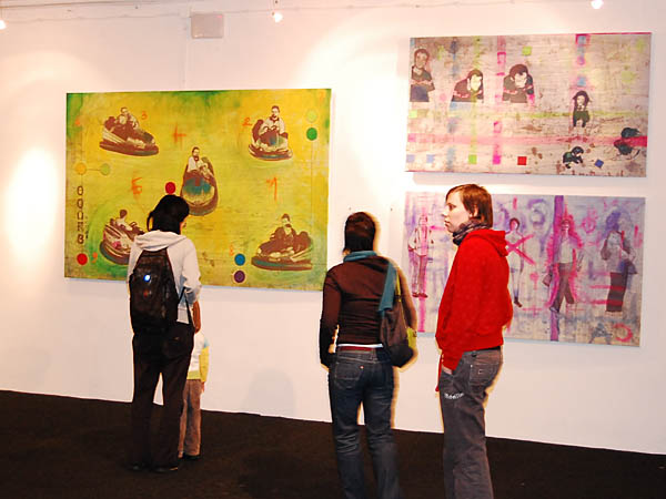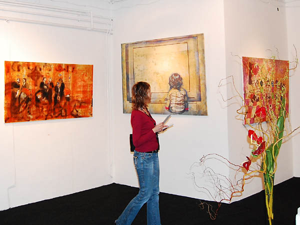 Wernisażowa publiczność tym razem była mieszana. W tym samym czasie w Fabryce Trzciny odbywał się koncert jazzowy na rzecz Sławka Kulpowicza, przygotowany przez jego przyjaciół, a opatrzony wsparciem medialnym Radia Jazz, które także patronuje naszej galerii. Stąd wymieszanie było tylko pozorne, bo wielu jazzomaniaków to jednocześnie osoby aktywnie interesujące się plastyką. Mariaż z koncertem był jednym z powodów, dla którego wernisaż mile rozciągnął się w czasie.