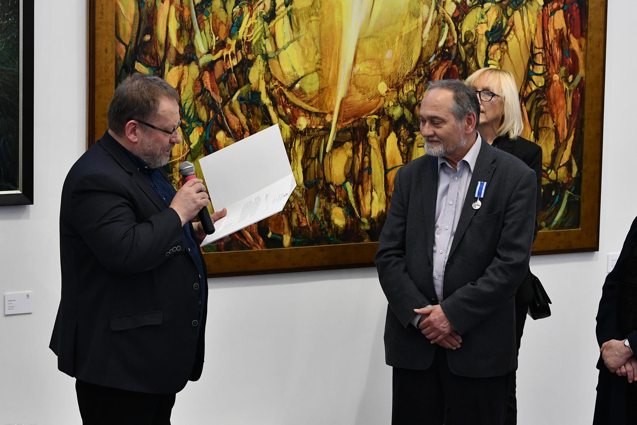 Magdalena Doksa-Tverberg, Z-ca Dyrektora Wydziału Kultury i Dziedzictwa Narodowego Urzędu Miasta Krakowa, wręczyła autorowi odznaczenie Honoris Gratia, przyznawane przez prezydenta Krakowa osobom zasłużonym dla Miasta.