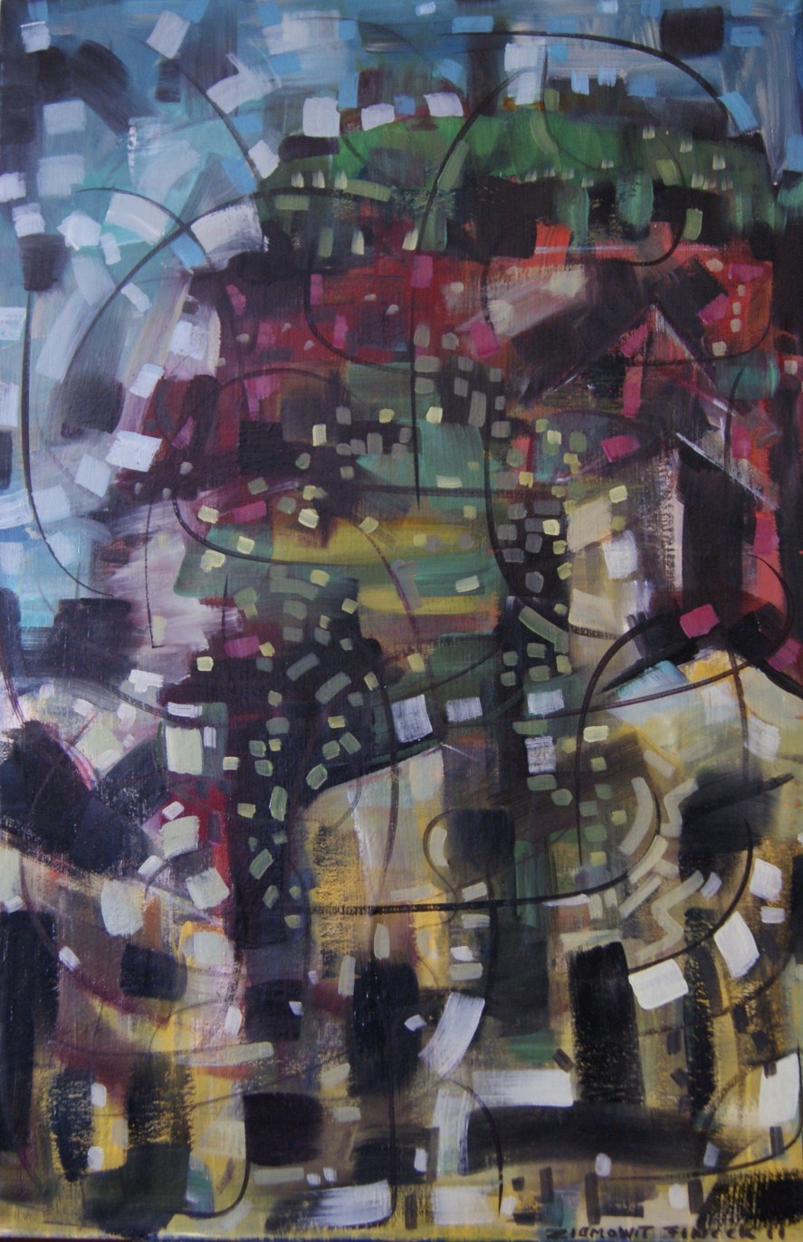 Prezentowane na wystawie obrazy - chóć mają różne datowanie - są wyrazem młodzieńczej swobody, upodobania do eksperymentów z fakturą i formatem prac. Widać, że Ziemowita Fincka interesuje otaczający świat. Nie jest obojętny na to, co dzieje się wokół niego jako człowieka. Wskazuje na to nie tylko anegdotyczna tematyka niektórych obrazów - choć stylistycznie daleka od realizmu, jednak mocno osadzona w ludzkich doświadczeniach. Jego prace nie stanowią prostego „newsowego” komentarza, a finezyjne interpretacje, w których porusza tematykę degradacji środowiska, emigracji, biedy, a nawet konfrontuje się z tematem II wojny światowej. Autor jest wrażliwy na ponadczasowe, rodzime wartości: piękno polskiej przyrody, przywiązanie do religii oraz mądrość, wynikającą ze starych przysłów i legend. Kiedy kreuje bohaterów swoich prac, sięga po archetypiczne wyobrażenia, które mogą kojarzyć się - jak skrzyżowanie słowiańskiej mitologii i wierzeń - ze światem zwierzęcym. Trudno powiedzieć, kim są tak naprawdę jego postaci, ale takie słowa jak strzygi czy dusiołki same się nasuwają. Twórczość ta obejmuje rozległe spectrum tematów, które mieszczą się między kulturą a naturą. Intelektualnie dominująca jest kultura, natomiast w sferze estetycznej świat przyrody.