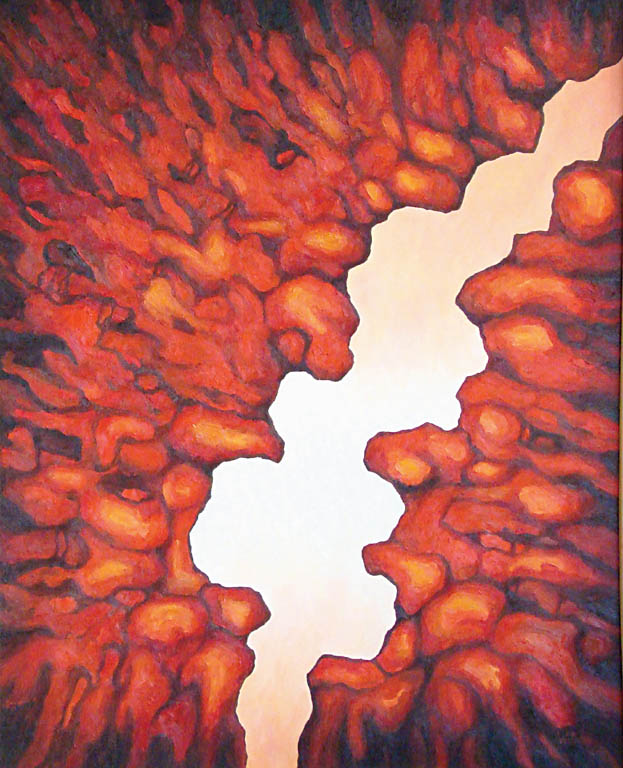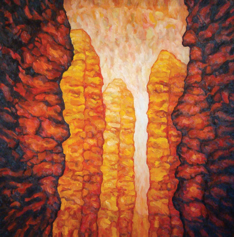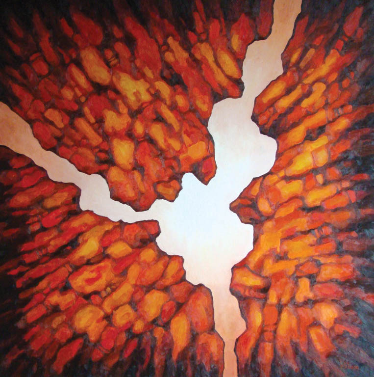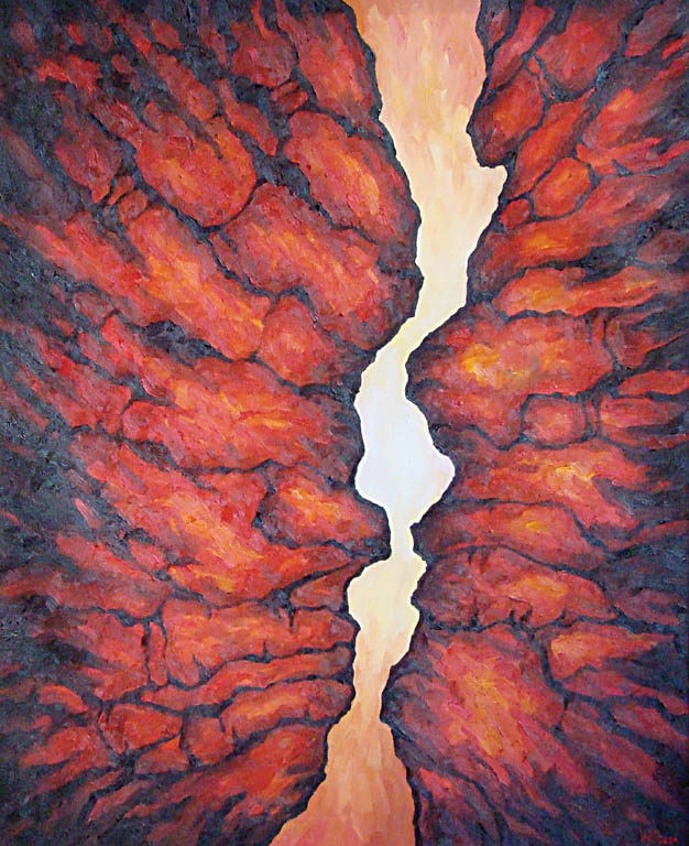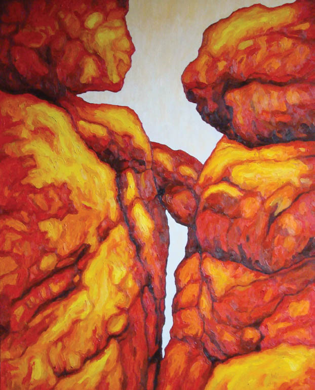 Malarstwo Wita Bogusławskiego inspirację czerpie z natury, z jej nieożywionych fragmentów. Artysta wciągnął do swojego symbolicznego repertuaru form kamienne struktury skał, rodem z amerykańskich parków narodowych i kanionu Colorado, choć sam przyznaje się przede wszystkim do poszukiwań w rejonie Gór Stołowych a nie Skalistych. Nadaje im ciepłą, niemal ognistą i mocno niepokojącą kolorystykę czerwonych ugrów i palonej sieny. Niektórzy z jego kamiennych bohaterów w bardziej dosłowny sposób obdarzeni zostali oczami i ustami, ludzkimi rysami twarzy, traktowanymi jako prefiguracje ludzi pierwotnych, ich najprostszych instynktów i emocji.
