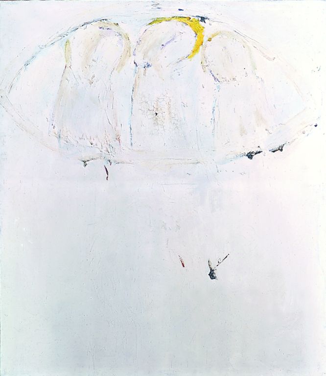 Prace zgromadzone w następnej sali zaskakują – po mocnej dawce wrażeń wywołanej żywiołowymi obrazami wkraczamy w strefę ciszy wypełnionej bielą. Zgromadzono tu prace powstałe po 1989 r. – z cyklu Dzienniki, Obrazy zamalowane oraz obrazy o bieli, które stanowią zwrot formalny w twórczości artysty. To wyciszone, niefiguratywne kompozycje, w których artysta posługuje się nadrzędną dla niego barwą – bielą. Artysta w obrazach tych z jednej strony podejmuje zagadnienia wewnętrzne malarstwa, a z drugiej odnosi się do własnych przeżyć i egzystencjalnych rozterek. Dalszą część wystawy stanowią cykle, w których Pawlak skupia się na rozważaniu zagadnień malarskich: Notatki o sztuce, Przestrzeń logiczna obrazu, Historia koloru i najnowsze Linia barwna oraz Linia kredką. Rozważaniom tym towarzyszą dwaj mistrzowie artysty Kazimierz Malewicz i Władysław Strzemiński – których obrazy są często „bohaterami” prac artysty. Zamknięcie wystawy stanowią obiekty-rzeźby wykonane z wtórnie użytych przedmiotów: puszek, gwoździ, nakrętek, które następnie autor pokrywa ulubioną warstwą bieli.