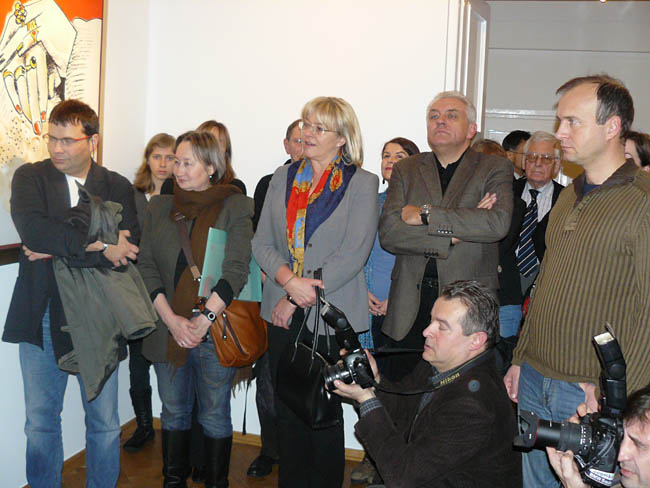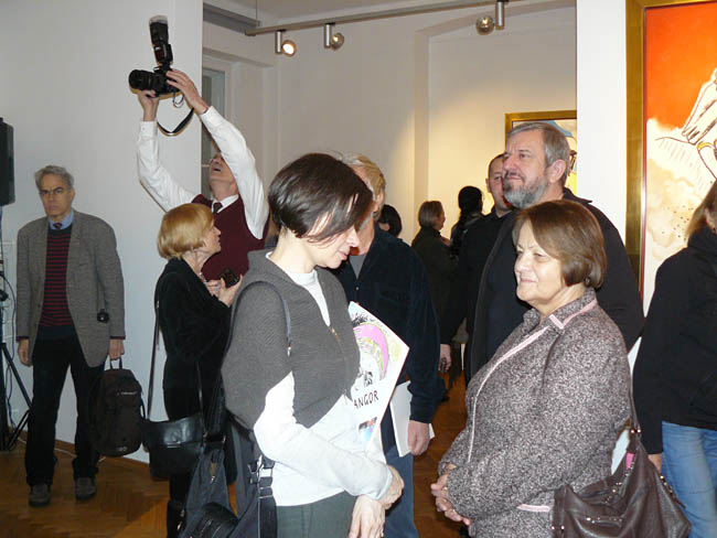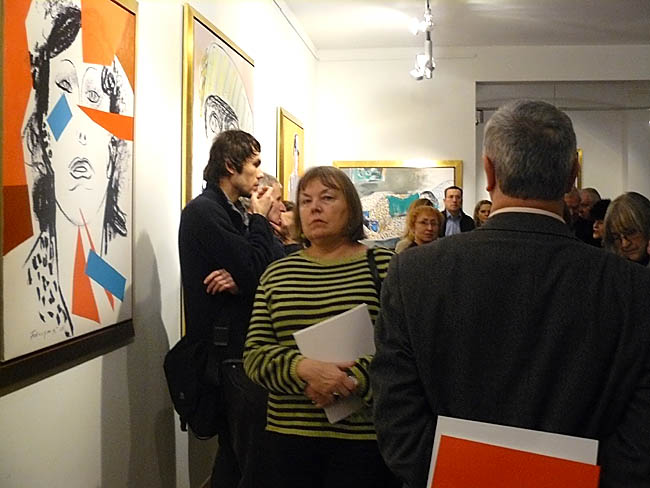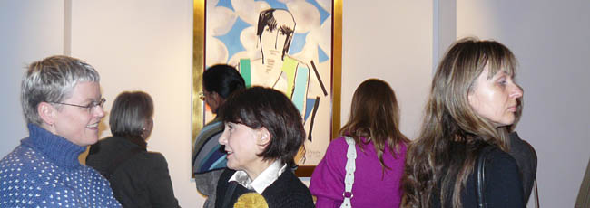 Artysta w swoich pracach skupił się przede wszytskim na postaci kobiecej. Każdy z obrazów poświęcony jest jednej, choć nie tej samej modelce (aczkolwiek dominują prace z Magdą, żoną artysty). Fangor świetnie uchwycił w nich „charakter” i być może swój stosunek do malowanych pań. O ile obrazy, na których znalazła się żona artysty są ciepłe, a z modelki emanuje spokój i domowy „niepośpiech”, o tyle inne pozujące panie wydają się być pewne siebie lub trochę wyrachowane, czy znowu nieco zagubione. Ale wystawa to nie tylko kobiece portrety, jest też kilka prac martwych natur, np. Czerwone jabłko, Kontrabas, Wiolonczela oraz jeden pejzaż Santa Fe, wszystkie wykonane w tej samej technice.