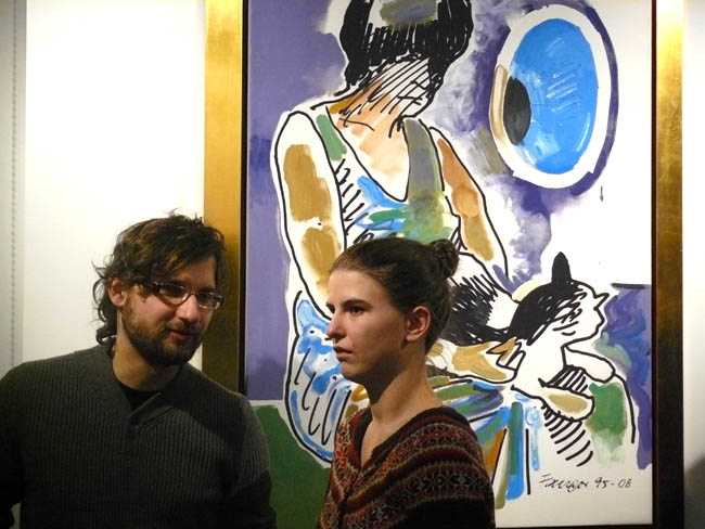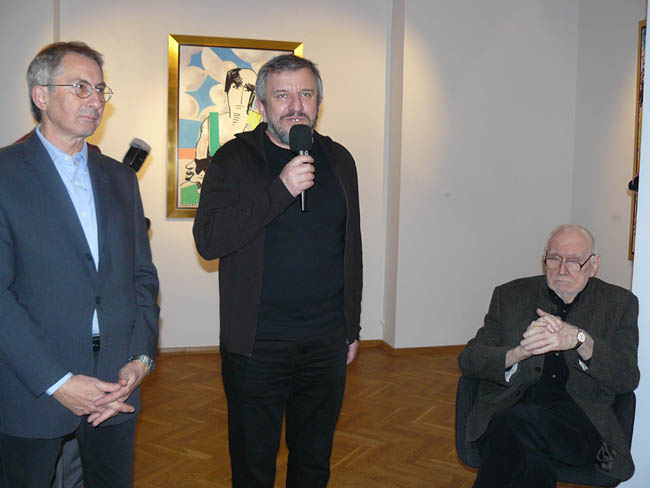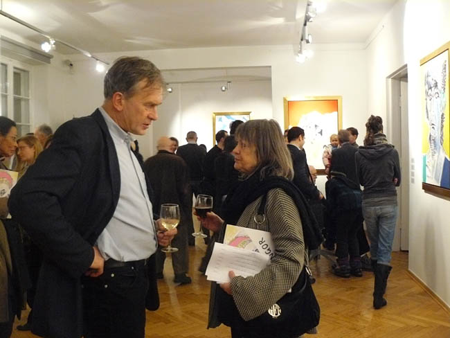 W pracach prezentowanych w aTak najważniejszy jest rysunek – w przeciwieństwie do bardzo malarskich, rozedrganych fal i kręgów Fangora z lat 60. Jest to kreska, dobrze znana z wczesnych dzieł artysty – miękka i płynna. Barwy natomiast są niejako dopełnieniem rysunku, choć w znaczący sposób wpływają na odbiór całości. Co ciekawe prace te powstawały etapami, tj. rysunek był wcześniejszy, natomiast nałożenie warstwy malarskiej dokonało się później. Interesująca jest też technika wykonania obazów – Fangor wcześniejsze rysunki naniósł na płótno jako wydruk komputerowy, a następnie nałożył farby olejne oraz wkleił geometryczne figury kolorów. Do tego działania odnosi się tytuł wystawy Palimpsest. Jak mówi encyklopedia palimpsest to „rękopis spisany na używanym już wcześniej materiale piśmiennym, z którego usunięto poprzedni tekst”. Fangor na wcześniejsze rysunki naniósł nowy, malarski strój, a efektem tego zabiegu jest zupełnie inny odbiór poprzednio stworzonych rysunków. Jak widać z prezentowanych prac twórca mistrzowsko opanował zarówno warsztat rysunkowy jak i malarski, choć tutaj kolor został podporządkowany kresce.