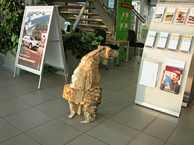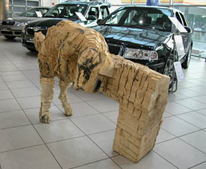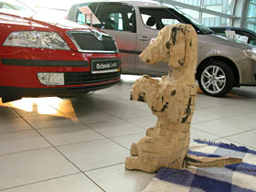 Jedną z nich jest przestrzeń dla rzeźby, jaka została stworzona w warszawskim salonie Skody. Wystawa prac Wojtka Pustoły jest już trzecią z kolei prezentacją, jaka została tu zorganizowana. Poprzednie dwie pokazywały twórczość Józka Nowaka i Sylwestra Abroziaka. Tak się złożyło, zapewne świadomie, że każda z ekspozycji prezentowała rzeźbę w drewnie. I choć były różnie zaaranżowane, za każdym razem w odmienny sposób wykorzystując walory interesującej przestrzeni salonu, dającego poprzez swoją wielkość, wysokość, szeroką płaszczyznę przeszkleń, a dzięki antresoli - różnych punktów widokowych, to każda z nich intrygująco bazowała na opozycji, jaka tworzyła się automatycznie pomiędzy naturalną, chropowatą, ciosaną powierzchnią drewna a błyszczącymi, nowoczesnymi płaszczyznami samochodowych karoserii. Nadawało to obiektom zupełnie nowy kontekst, który działał na drewno jak kontrapunkt, wydobywając jego surowe walory. A że rzeźbiarskie obiekty w trakcie wystawy są w przestrzeni salonu tematem pierwszym i dla każdego z gości w odbiorze obowiązkowym, gdyż kompozycja sali tak je pozycjonuje, to nie ma w takim towarzystwie nic zdrożnego dla sztuki. Zwłaszcza, kiedy pamięta się, że dla futurystów samochód w jego pędzie szybkości był piękniejszy niż klasyczna rzeźba. Szczególnie, kiedy wiemy, że ta teza już po kilku latach nie dała się obronić.