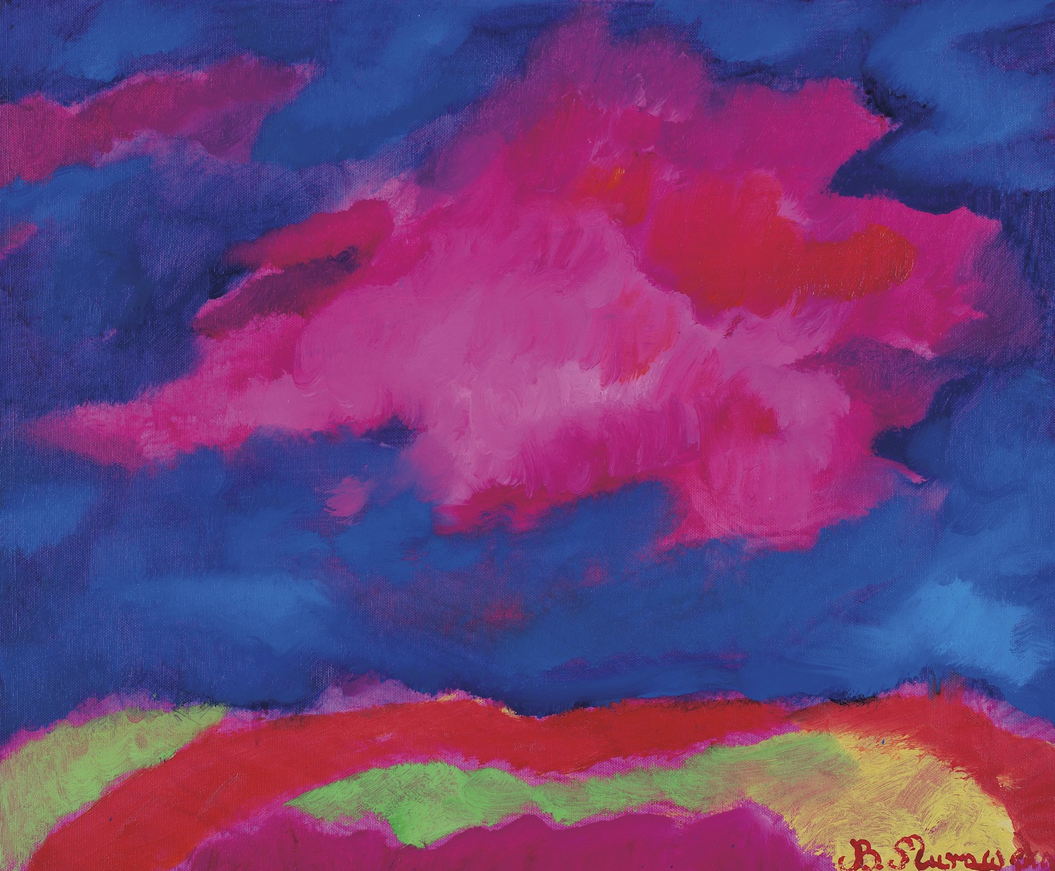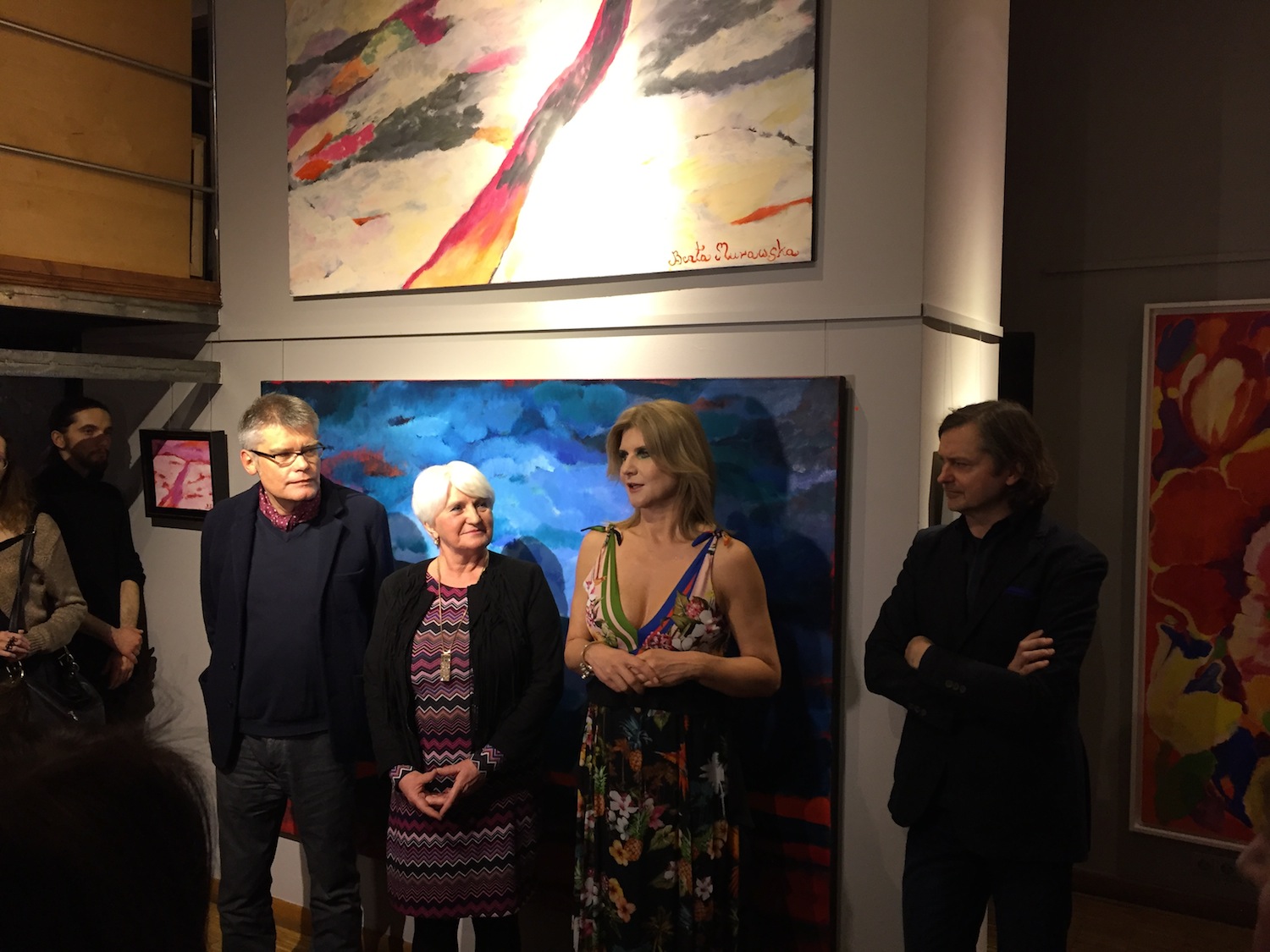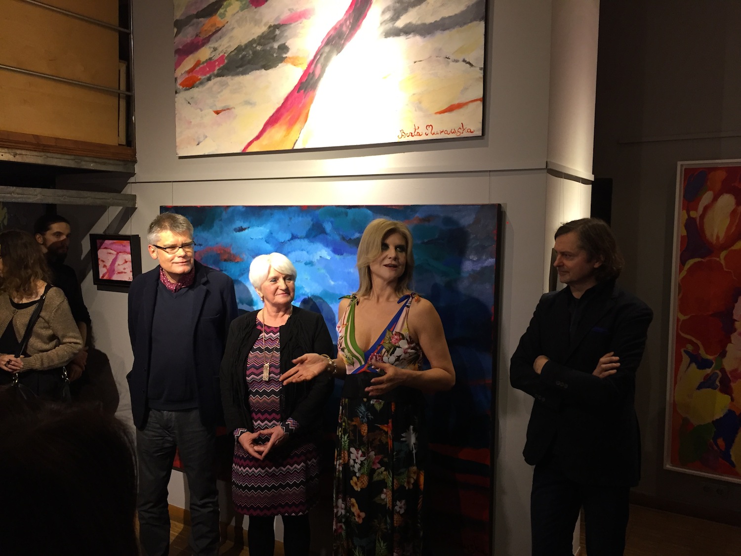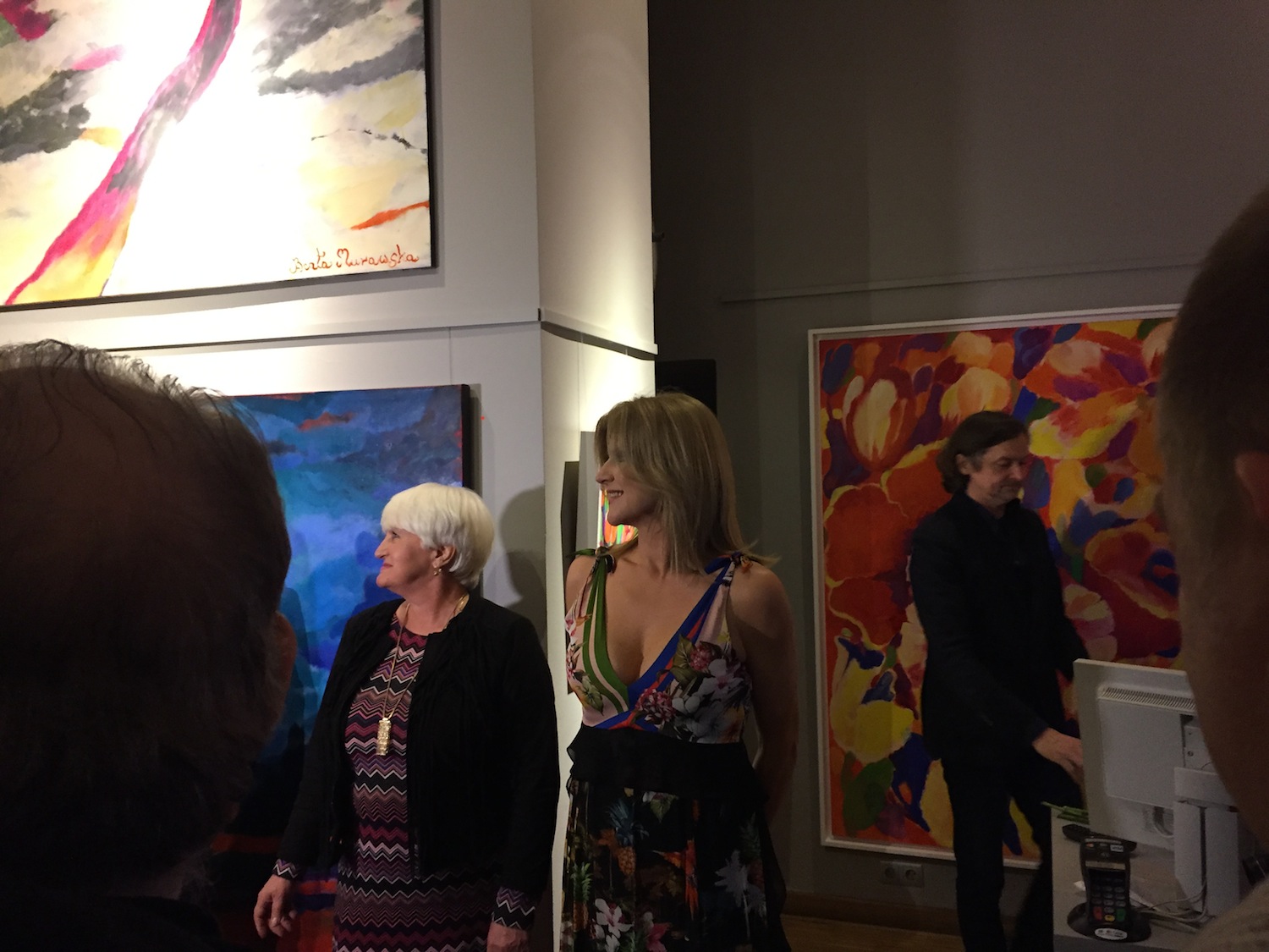 Beata Murawska, tak powitała tłumnie przybyłych gości - Różowa chmura. Była albo jej nie było. Zobaczyłam ją albo nie zobaczyłam. Na obrazie zawisła nad światem jak parasol. Zmysłowy muślin, miękki plusz. Uwielbiam róż - to mój kolor. Nawet rękawice bokserskie mam różowe.
