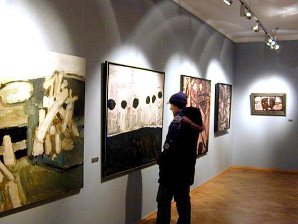Uwagę zwraca bardzo różnorodny zestaw prac Rajmunda Ziemskiego - od dramatycznej, olejnej abstrakcji podkreślającej mięsistość malarskiej materii, poprzez obraz tak bliski figuracji, że stojący już niemal na progu malarstwa przedstawieniowego, a jednocześnie bliski twórczości Tadeusza Brzozowskiego, po prace na papierze: delikatne i niemal liryczne. Drugi zestaw to właśnie prace Brzozowskiego - emocjonalnie równe, posługujące się tymi samymi środkami artystycznej kreacji, wywierające duże wrażenie dynamiką kompozycji i ekspresyjnych zestrojeń barwnych. Obok nich dwa duże obrazy Tadeusza Domnika z najlepszego, zdaniem wielu krytyków okresu w twórczości artysty, czyli z przełomu lat 50. i 60., świadczące dobitnie, że mamy do czynienia z niezwykłym, choć na wskroś nowoczesnym, kolorystą.