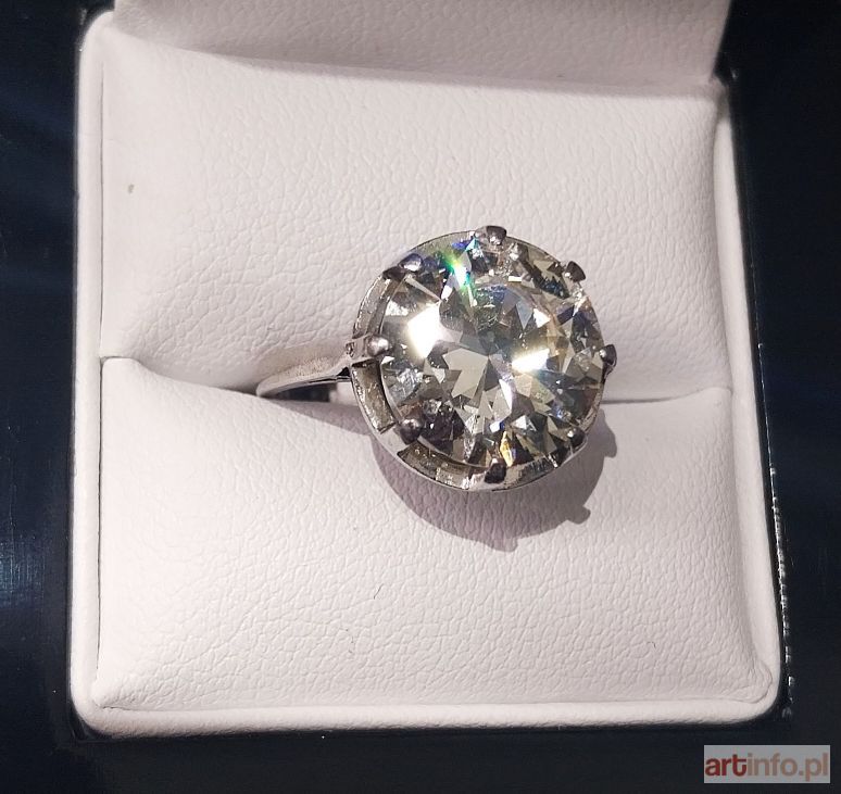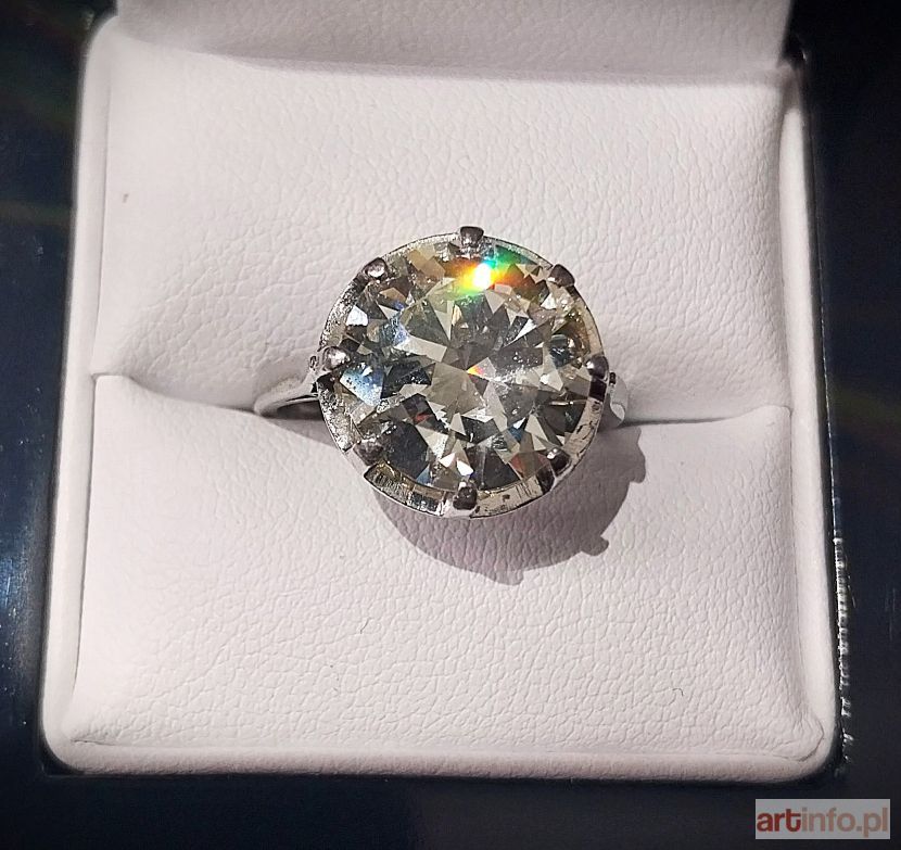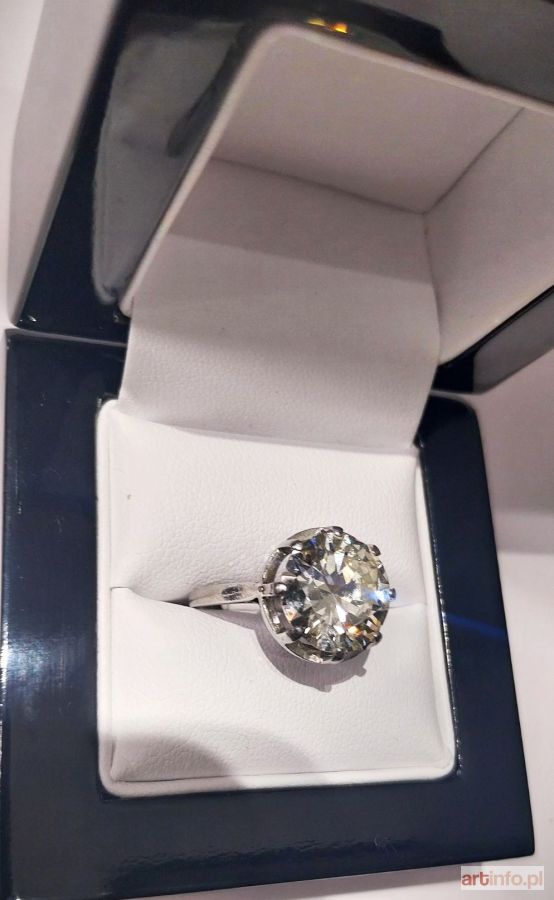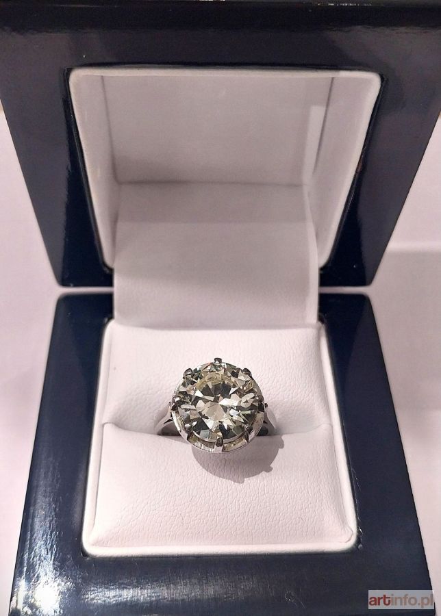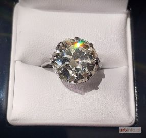 Przedwojenny platynowy pierścionek z dużym brylantem.