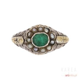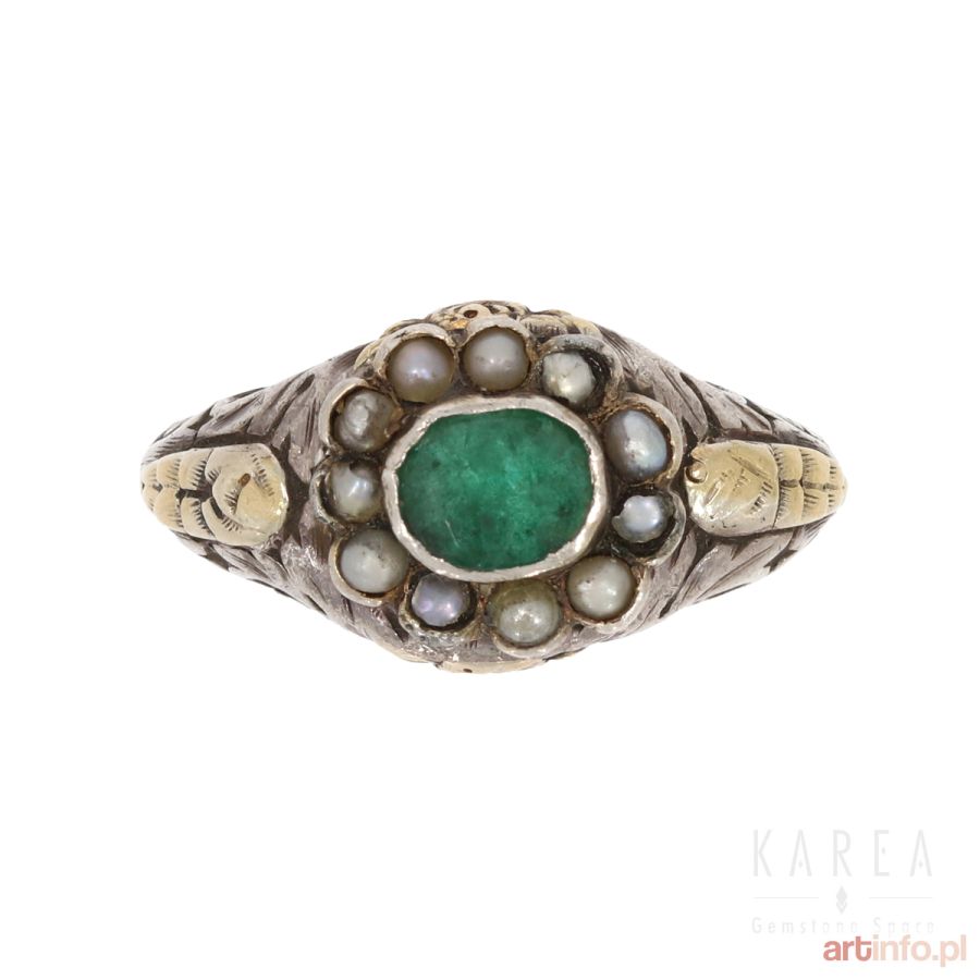 PIERŚCIONEK ZE SZMARAGDEM, 2 POŁ. XIX W. ,